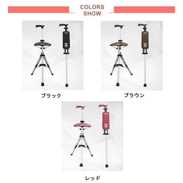 ステッキチェア 椅子になる杖 一本杖 ブラック ブラウン レッド