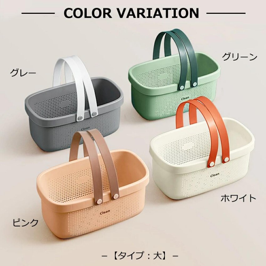 お風呂バスケット お風呂 カゴ 持ち運 ホワイト グレー ピンク グリーン 小 大