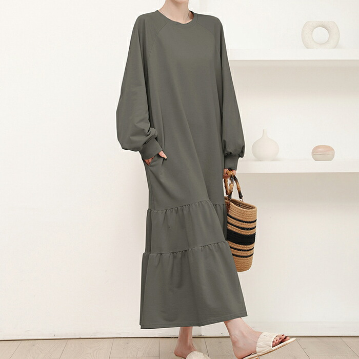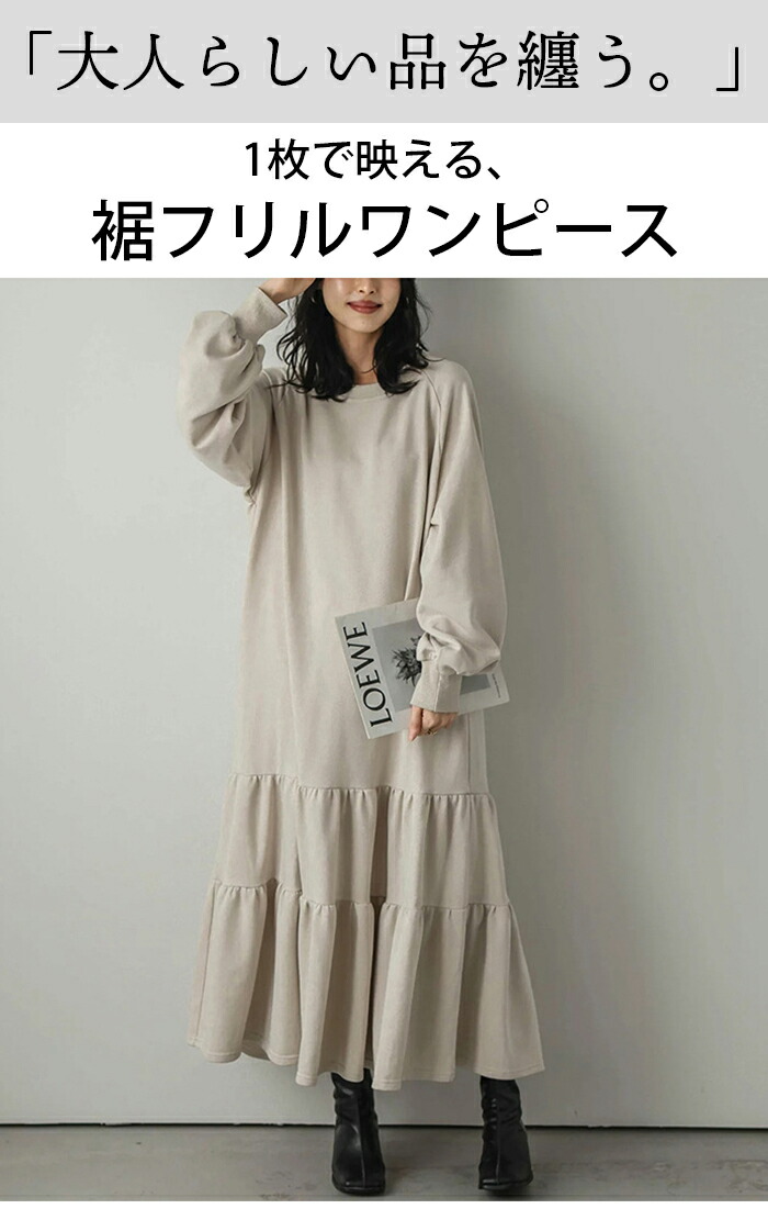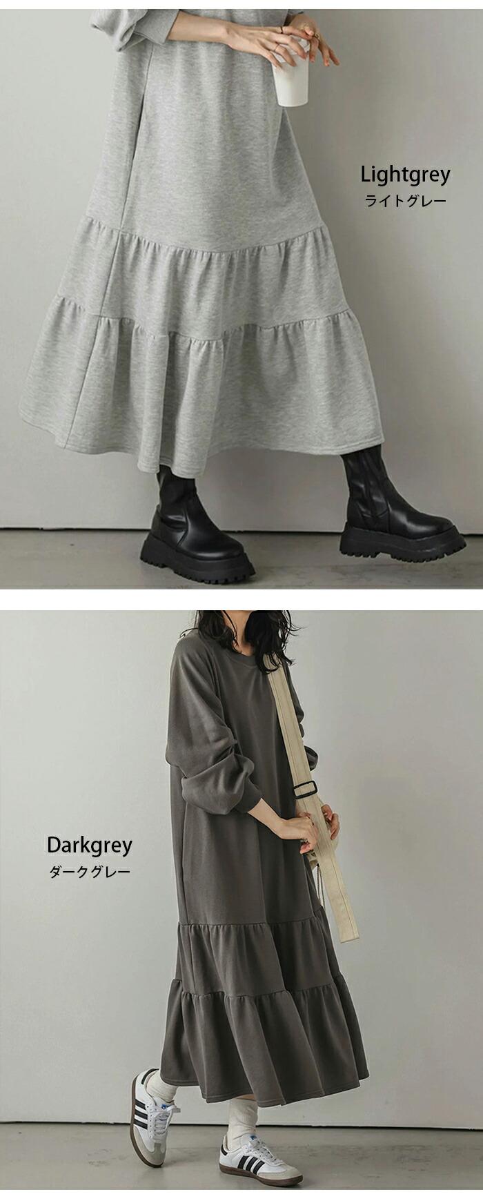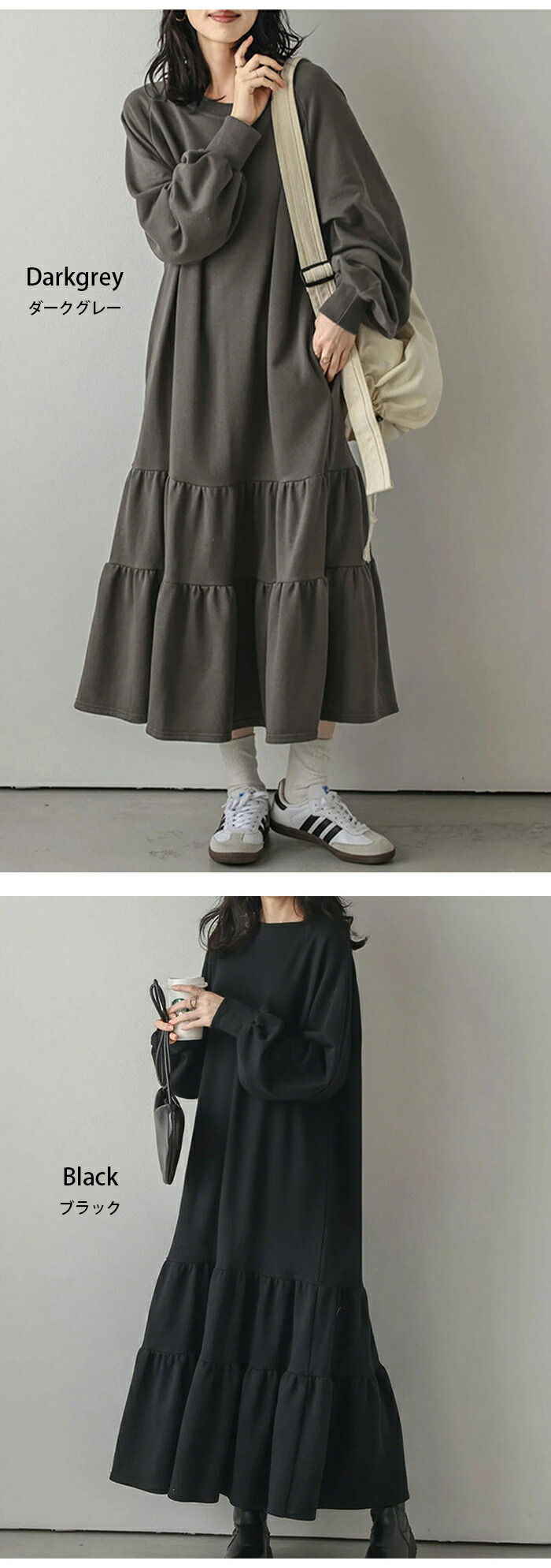 \25%クーポン利用で割引/ティアード ワンピース 長袖 スウェット 秋冬 ロングワンピース スエット トレーナー 薄手 レディース ロングワンピ ティアードワンピ ロング Aライ マキシ