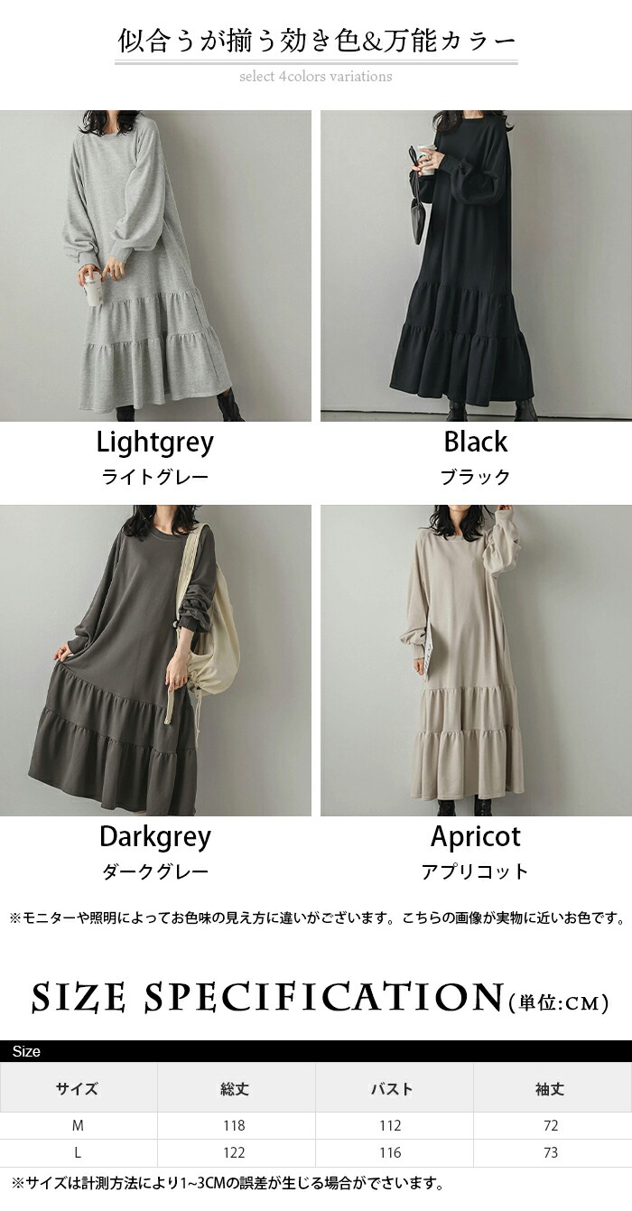 \25%クーポン利用で割引/ティアード ワンピース 新登場! ダークグレー ライトグレー ブラック アプリコット M L