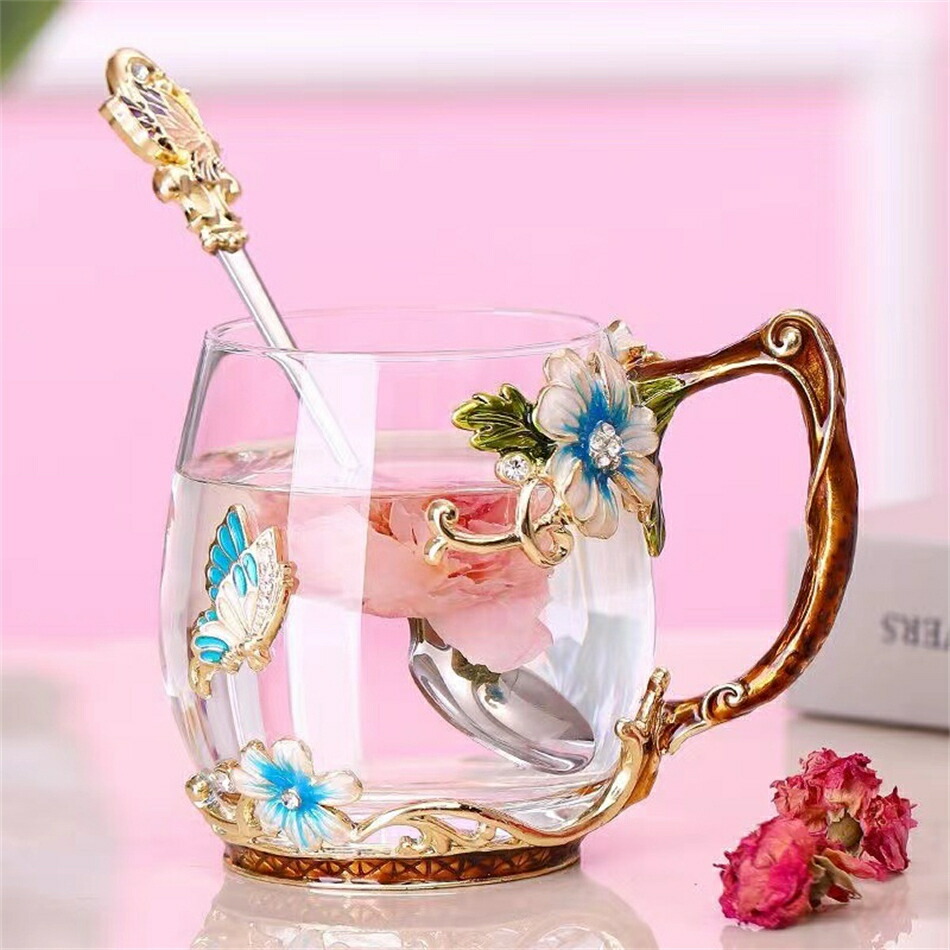 耐熱 ガラスティーカップ&ソーサー&蓋 color1レッド color1ブルー color2レッド color2ブルー