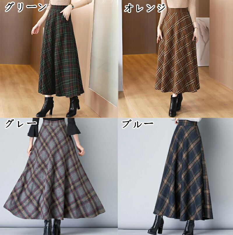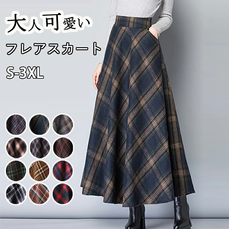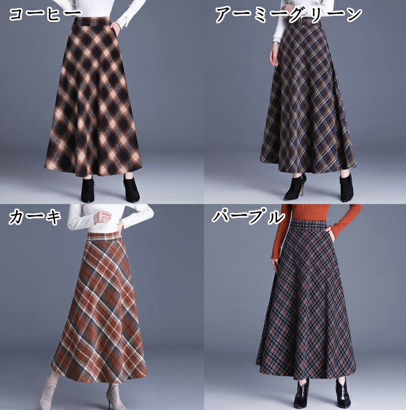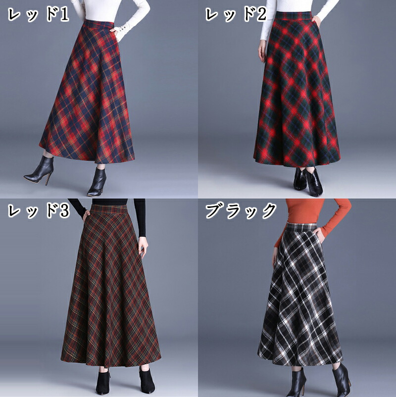 チェックスカート ロングスカート フレ レディースファッション 特集 レッド1 レッド2 レッド3 ブラック コーヒー アーミーグリーン カーキ パープル グリーン オレンジ グレー ブルー S M L XL 2XL 3XL