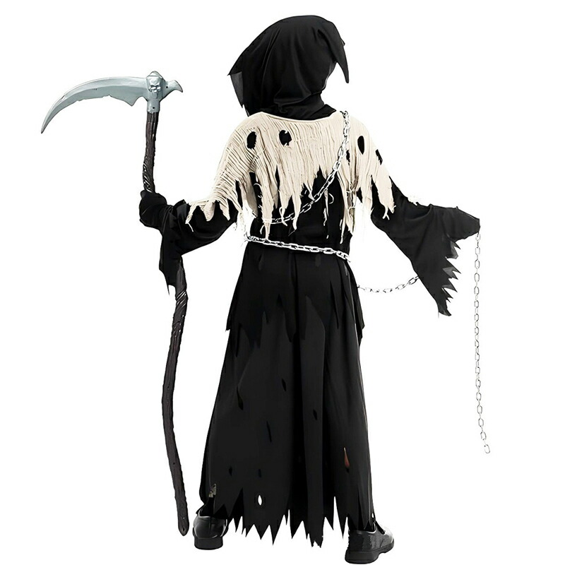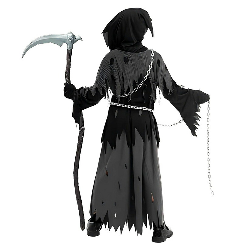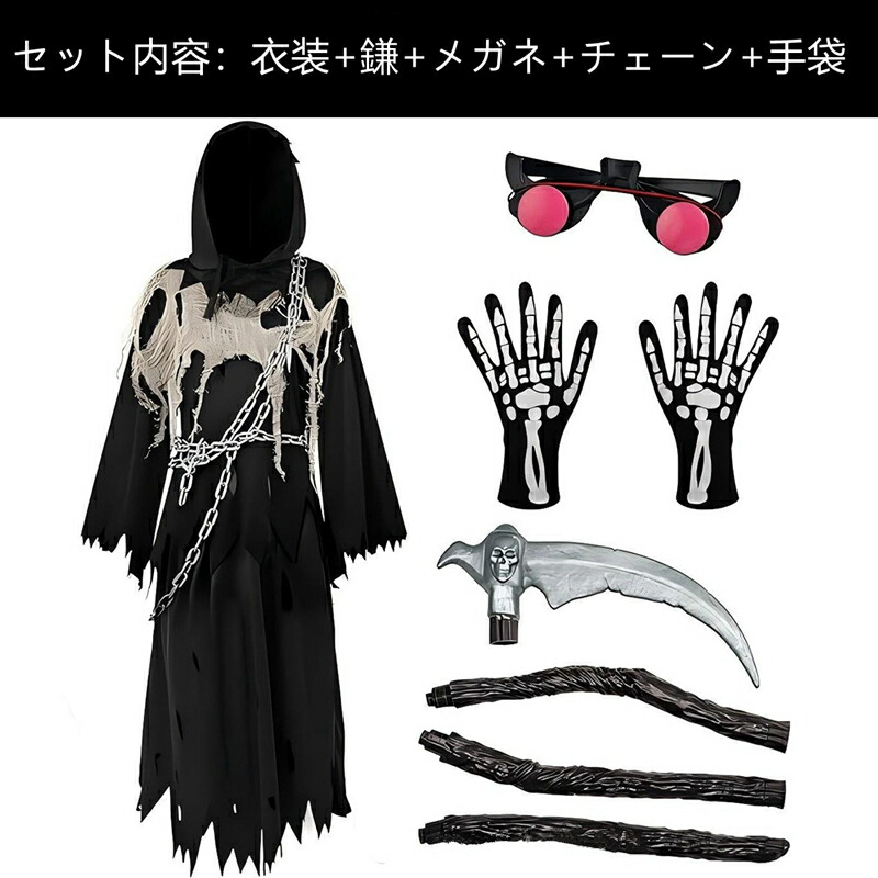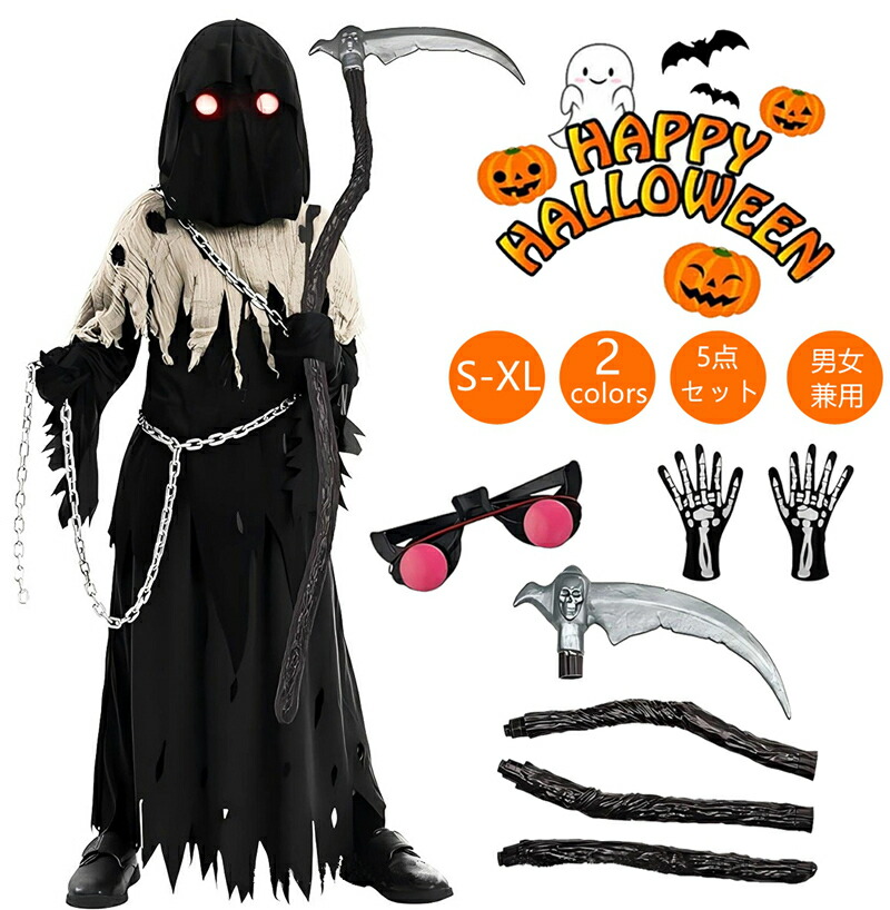 ハロウィン コスプレ 死神衣装 男の子 女の子 子供 鎌付き5点セット 悪魔 ゾンビ 死神 コスチューム 仮装 変装 ホラー 怖いキッズ 子供用 ジュニア パーティー 演劇 演 幽霊イベント