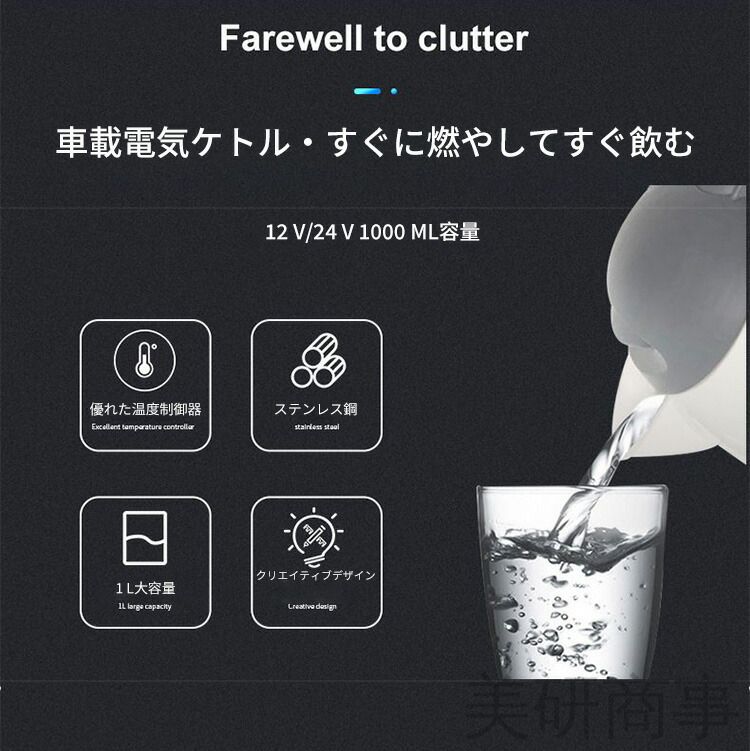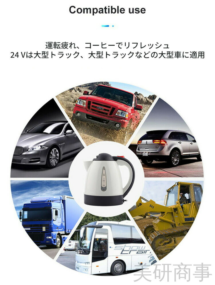 車用ケトル 車載電気ケトル トラック用 ブラック ホワイト 12V 24V