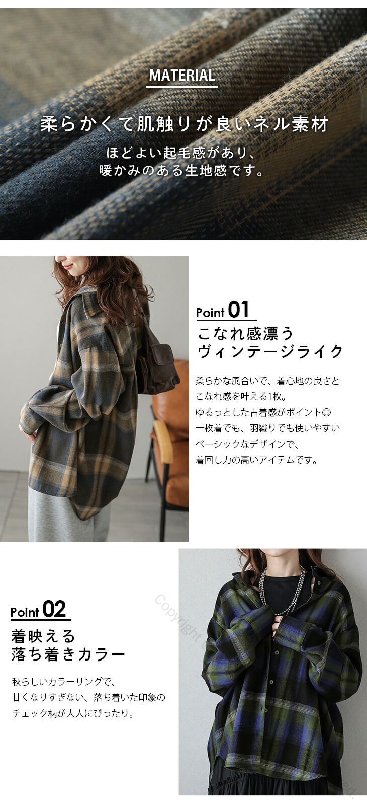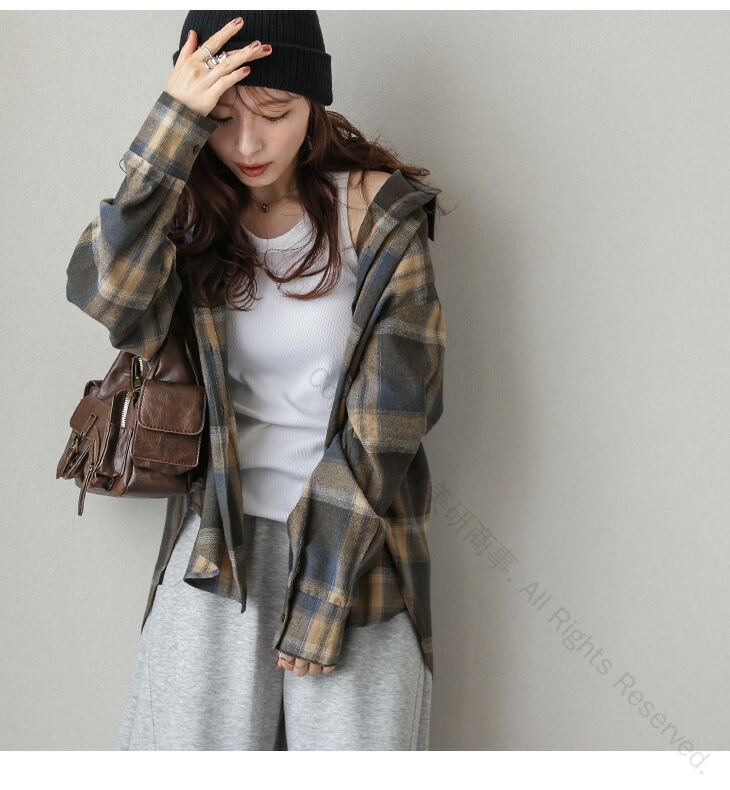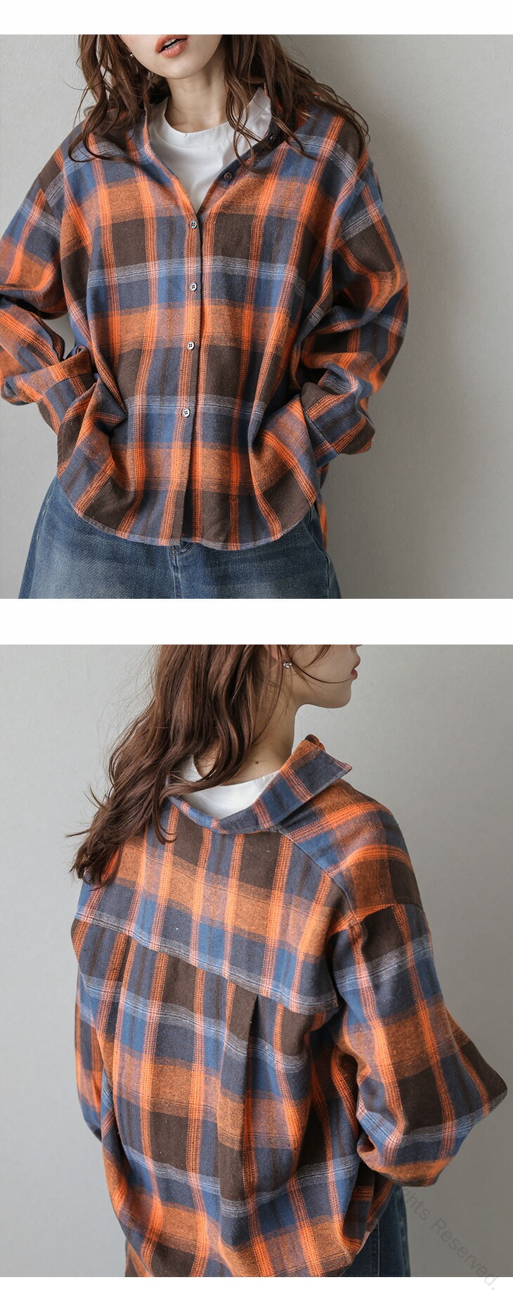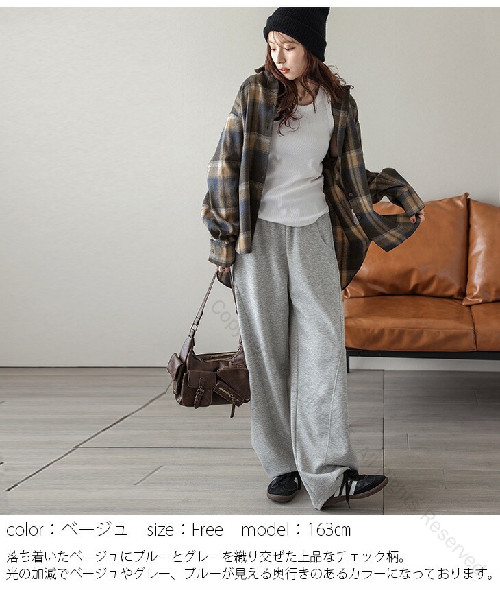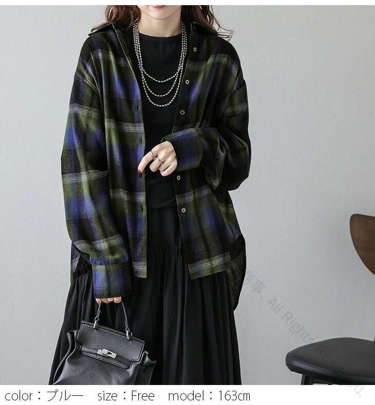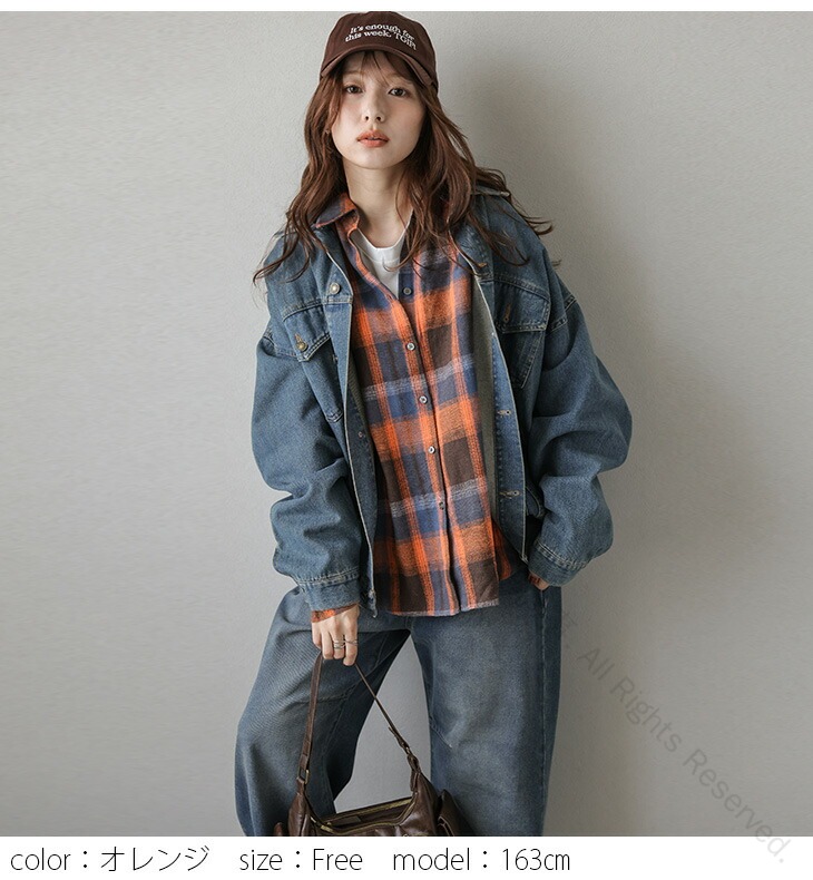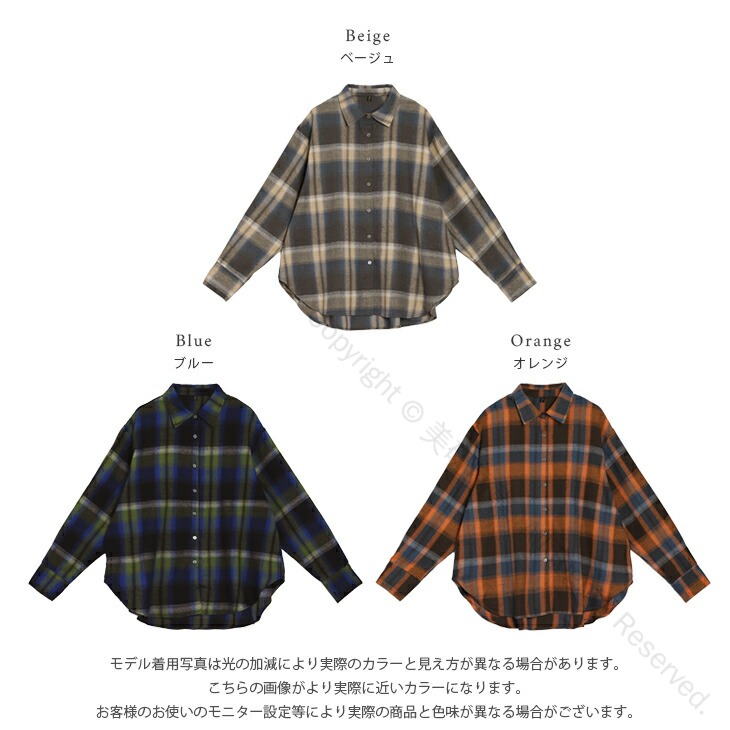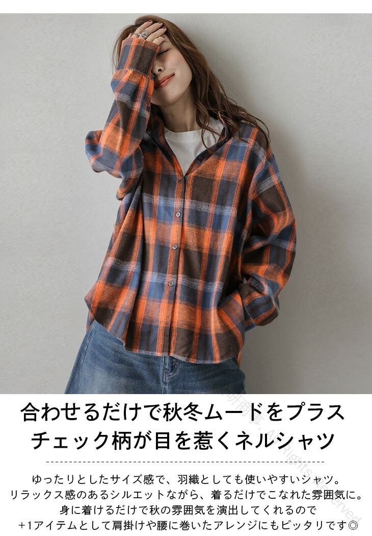 チェック柄ネルシャツ ヴィンテージ風ル レディースファッション 続々登場 ベージュ ブルー オレンジ フリー(1) フリー(2)