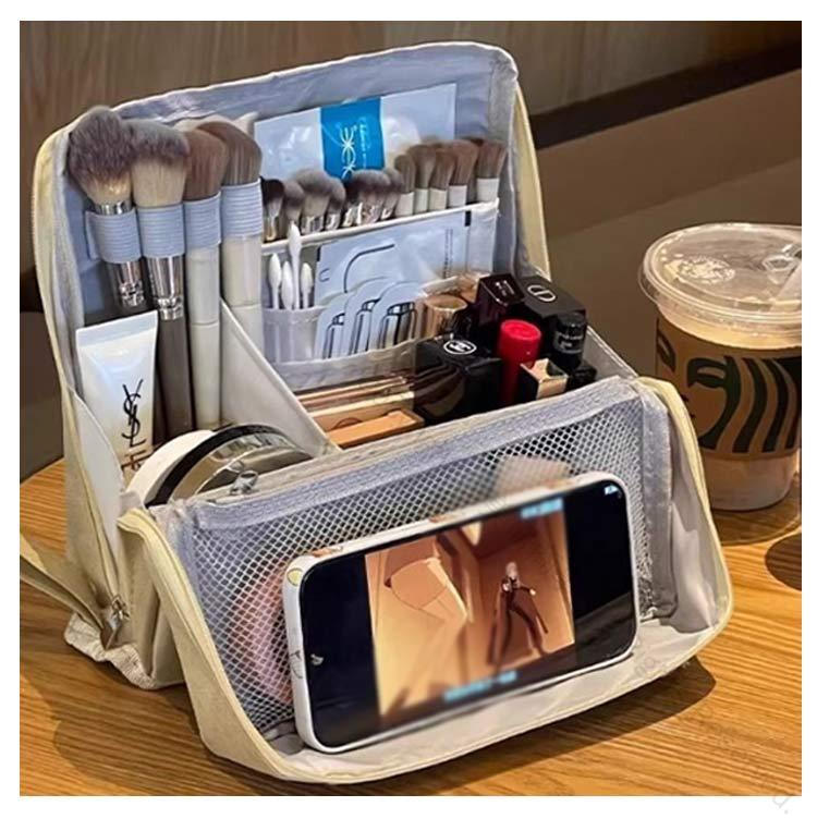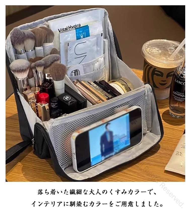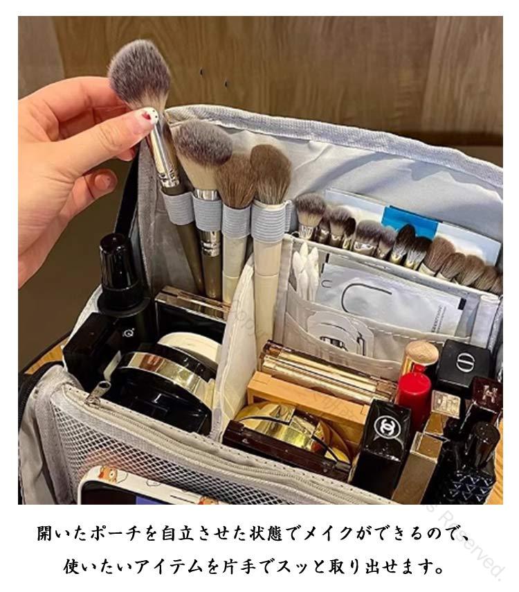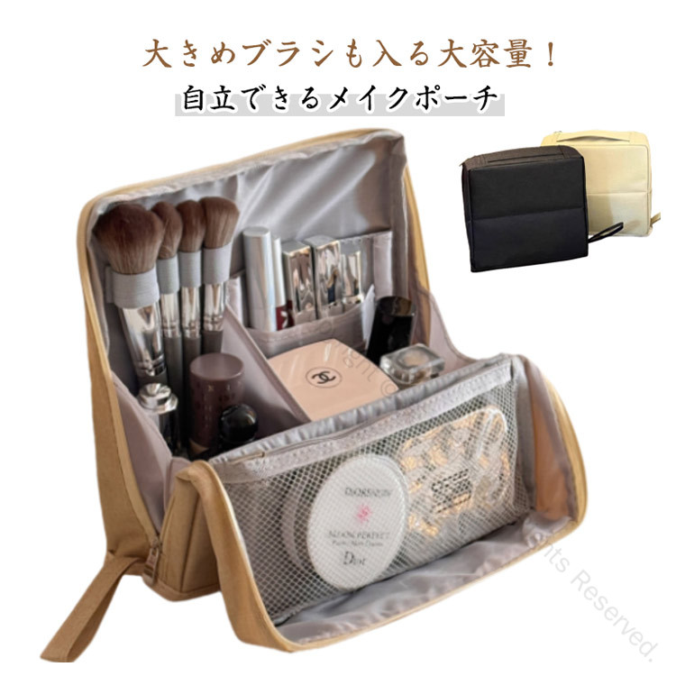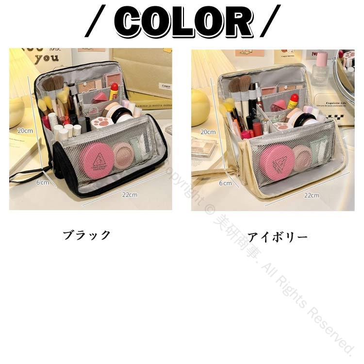 メイクポーチ 自立 化粧ポーチ 大容量 バッグ レディースバッグ 化粧ポーチ 期間限定割引クーポン ブラック アイボリー