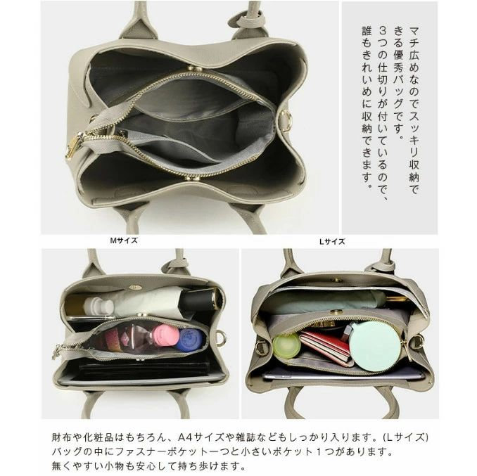本革 トートバッグ レディース ファス バッグ 小物 ブランド雑貨 続々登場 ブラック グレージュ オフホワイト M L