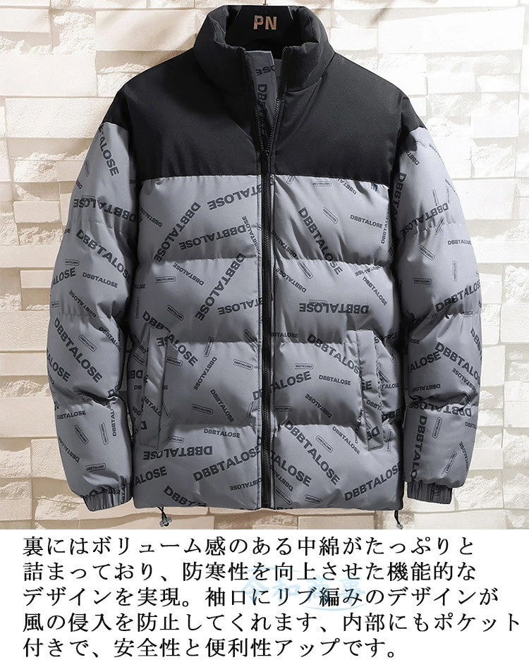 ダウンジャケット メンズ 英文字 中綿ジャケット キルティングジャケット おしゃれ カジュアル 防風 大きいサイズ 春冬 防寒