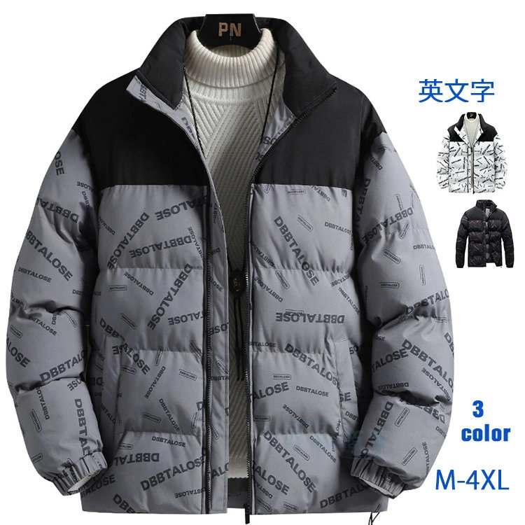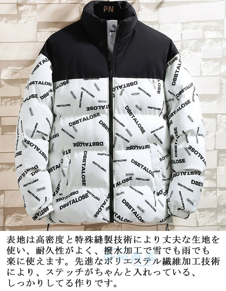 ダウンジャケット メンズ 英文字 中綿 コート ジャケット 新作 白 グレー 黒 M L XL 2XL 3XL 4XL