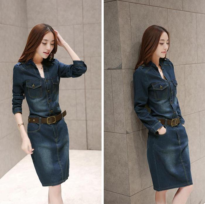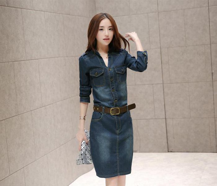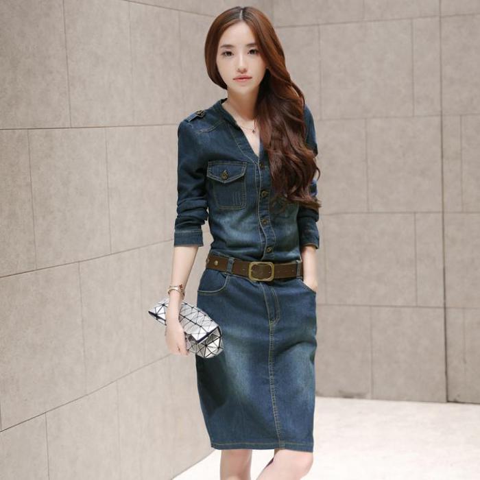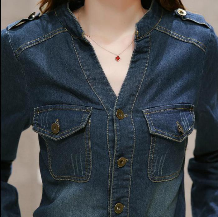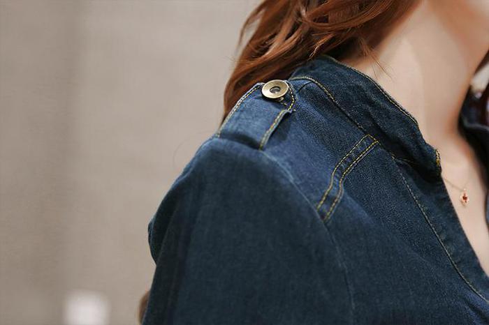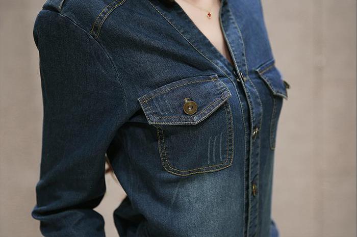 デニムワンピース 胸ポケット 立ち襟V レディースファッション 42%Off S M L XL 2XL