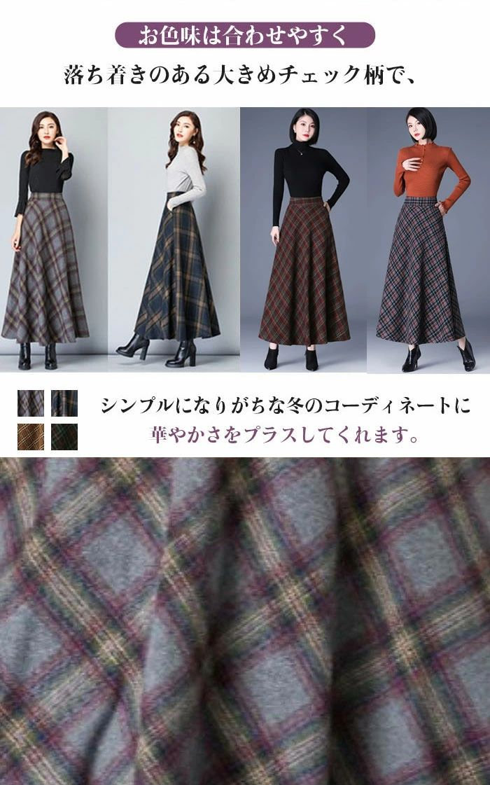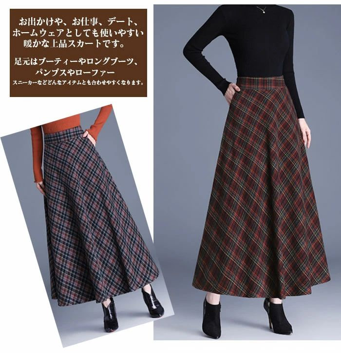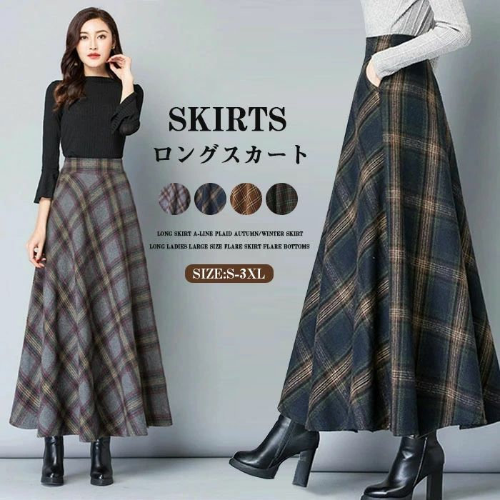 ロングスカート 秋冬 チェック柄 スカ レディースファッション 44%Off A B C E F G H S M L XL 2XL 3XL