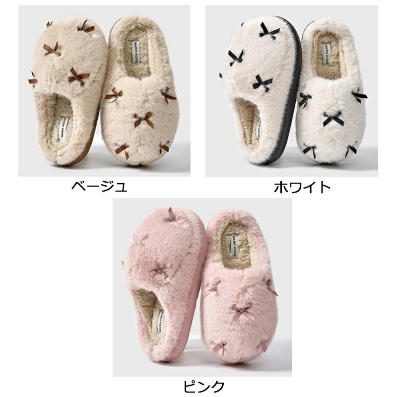 スリッパ 冬 暖かい ルームシューズ 靴 人気 ホワイト ベージュ ピンク 36-37(23.5cm) 38-39(24.5cm) 40-41(25.5cm)