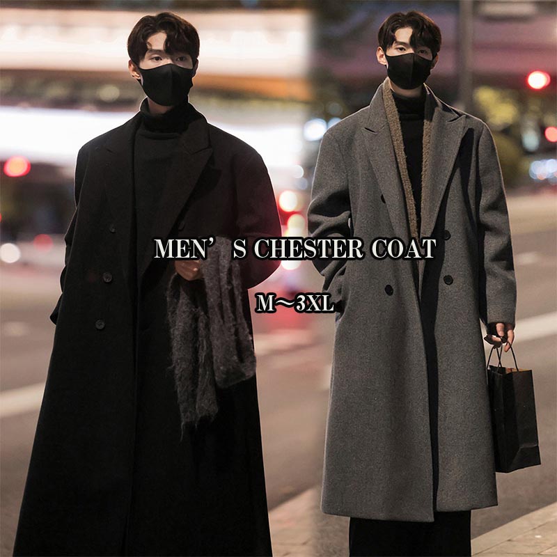 コート メンズ チェスターコート ロン コート ジャケット 新作 グレー ブラック M L XL 2XL 3XL