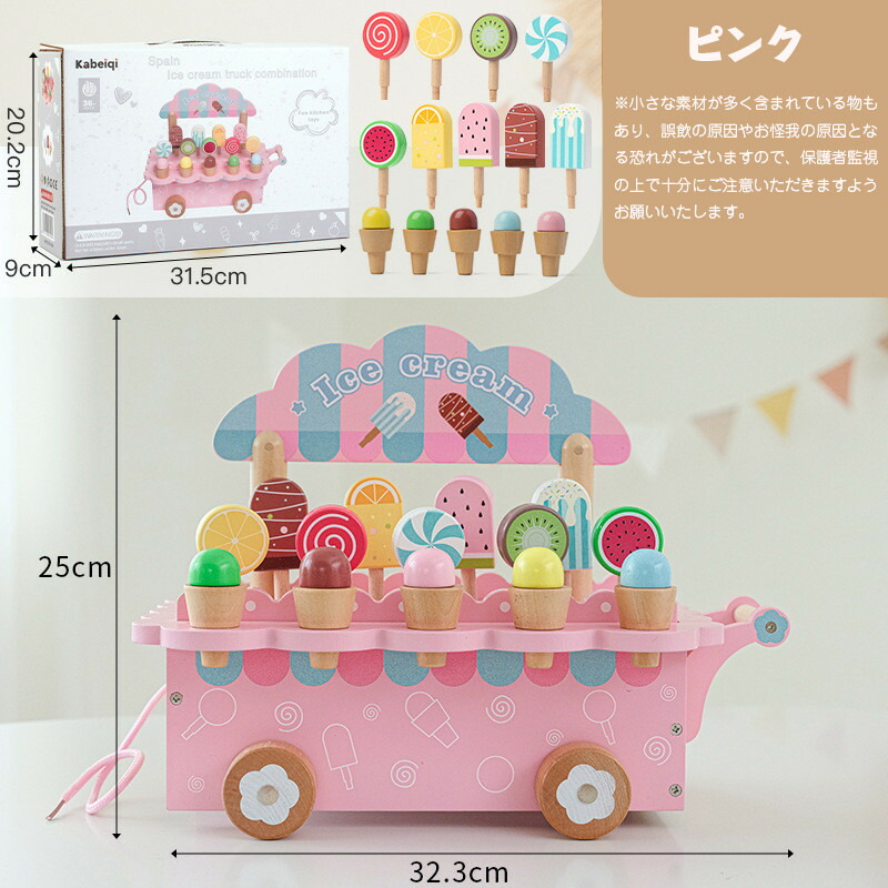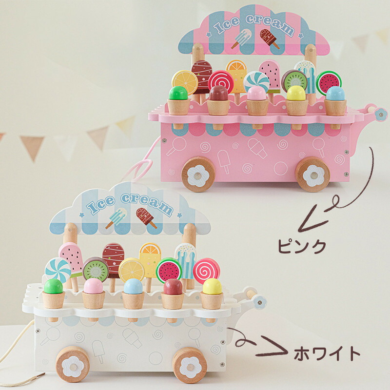 おままごと おもちゃ 木製 アイスクリ おもちゃ ゲーム 早い者勝ち ホワイト ピンク