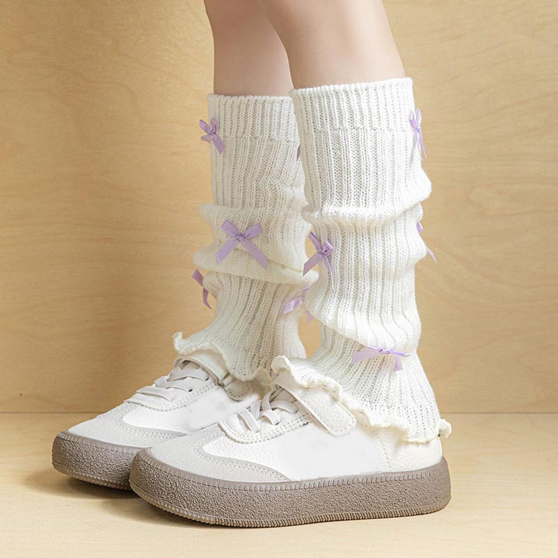 レッグウォーマー ルーズソックス風 子 キッズ 靴下 タイツ レッグウォーマー 豊富 黒+白 白+黒 白 白+桜 白+青 白+紫