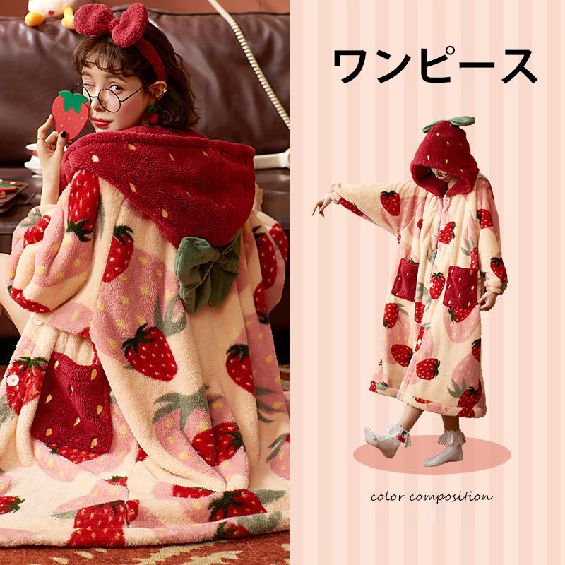 パジャマ ワンピース 苺 イチゴ いち M L XL 2XL