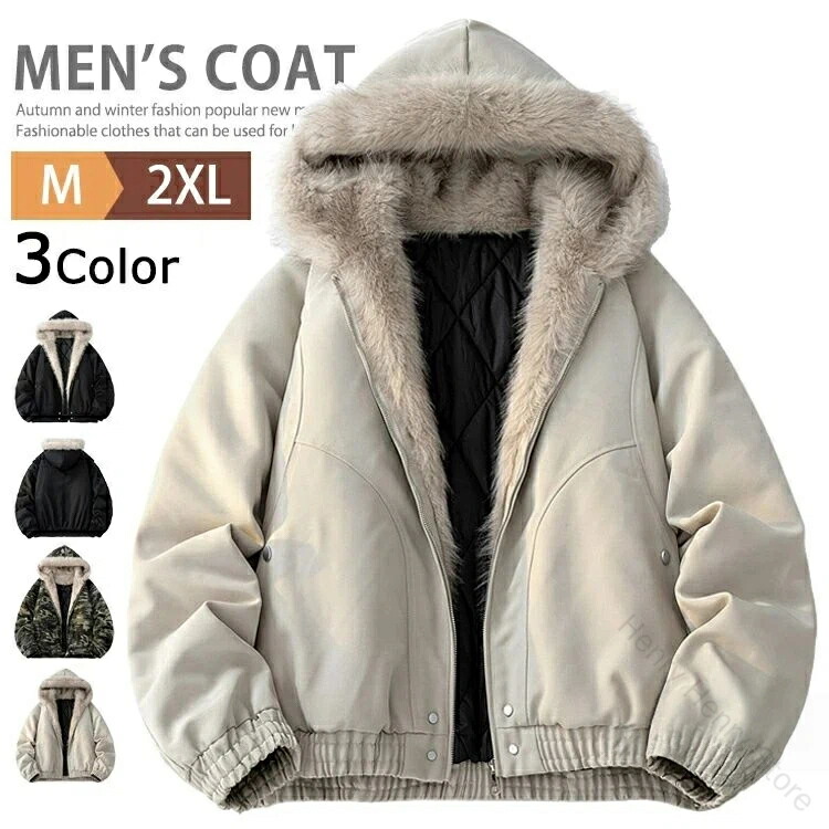 ファー付中綿ジャケット メンズ ジャン コート ジャケット 新作 グレー 黒 迷彩 M L XL 2XL