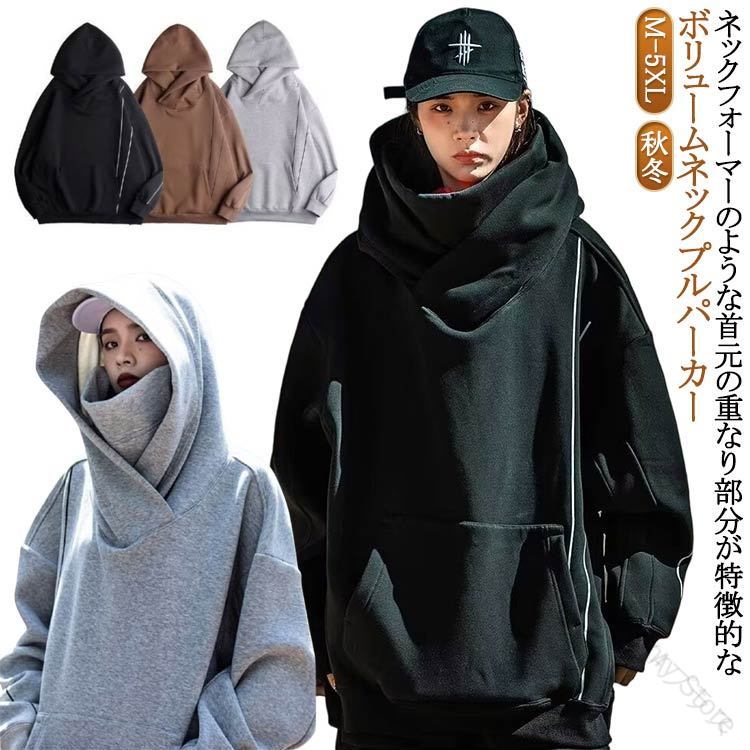 ボリュームネック パーカー レディース レディースファッション 早い者勝ち ブラック グレー コーヒー M L XL 2XL 3XL 4XL 5XL