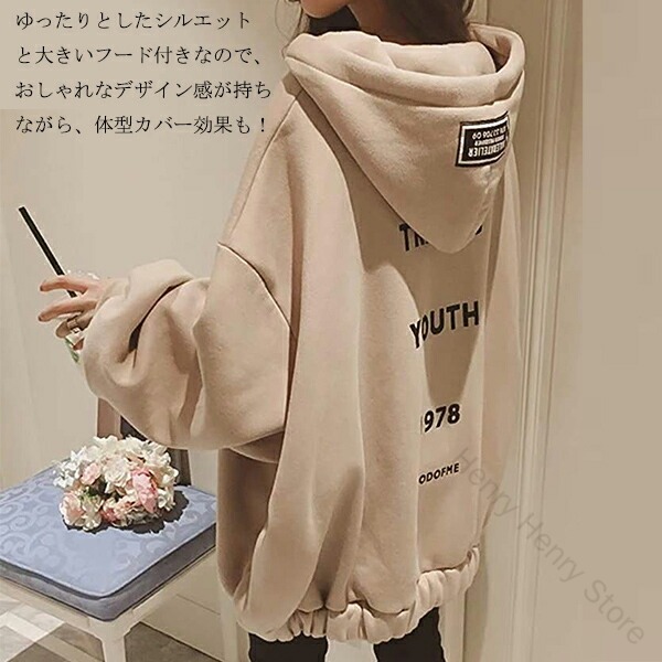 パーカー レディース 大きめ ロゴ ト レディースファッション 続々入荷中 ベージュ ブラック グレー M L XL 2XL