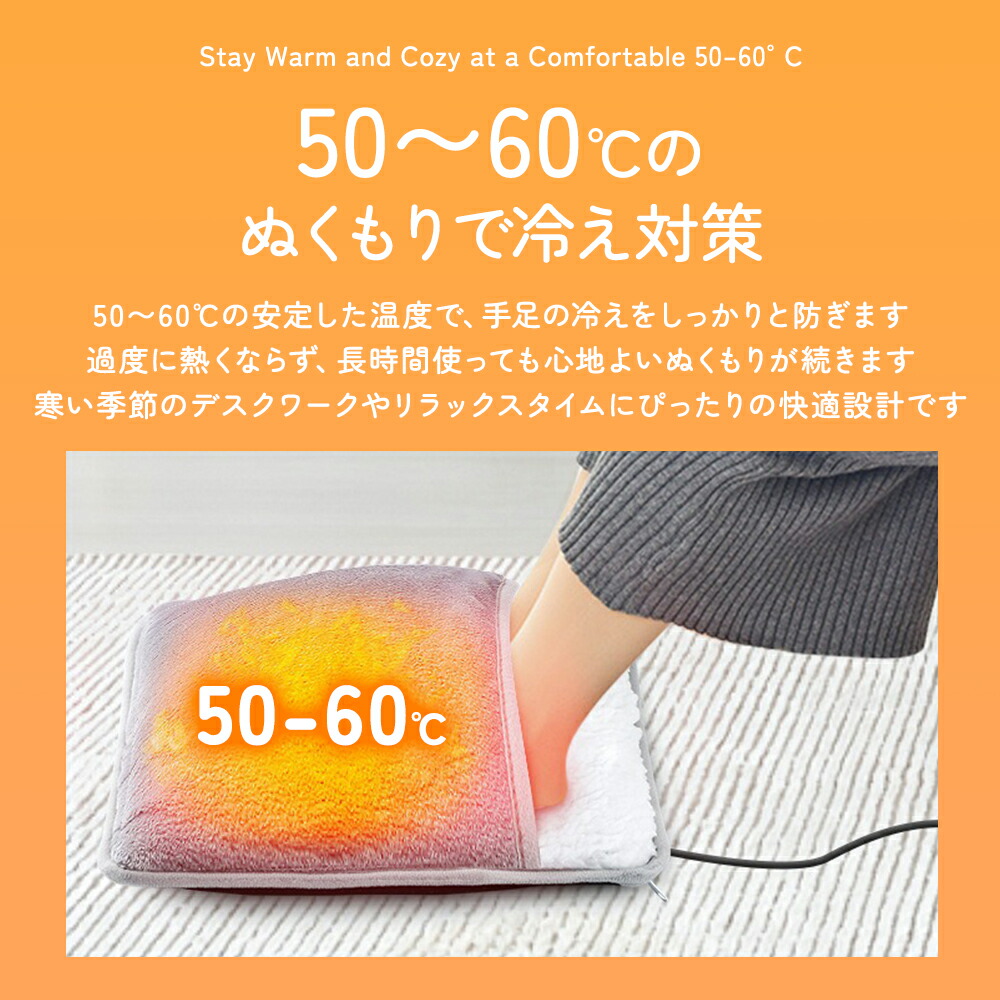 約50~60℃の心地よいぬくもりで冷えた足先をやさしく包みます。