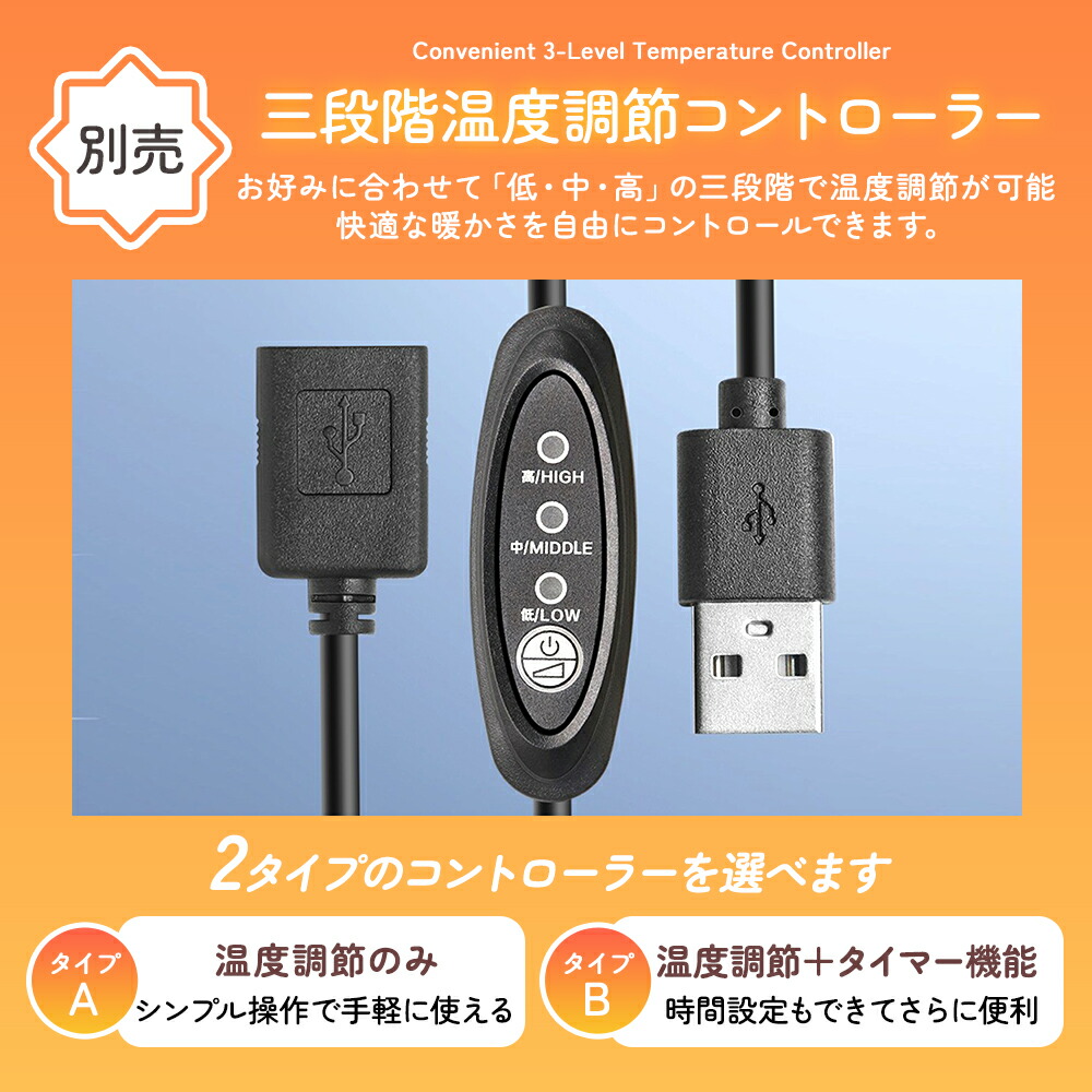 付属品:三段階温度調節コントローラー(有線リモコン)、USBケーブル