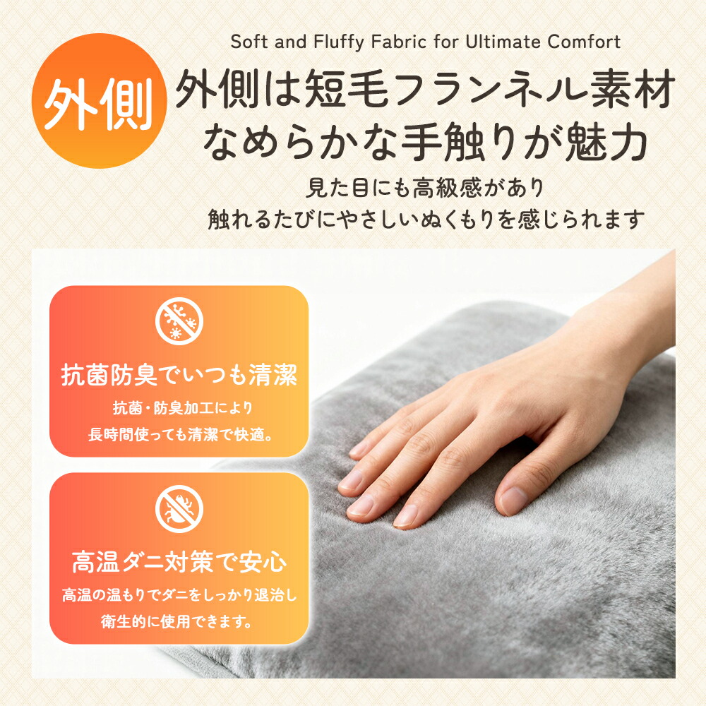 ふわもこのフランネル素材と内蔵ヒーター、
