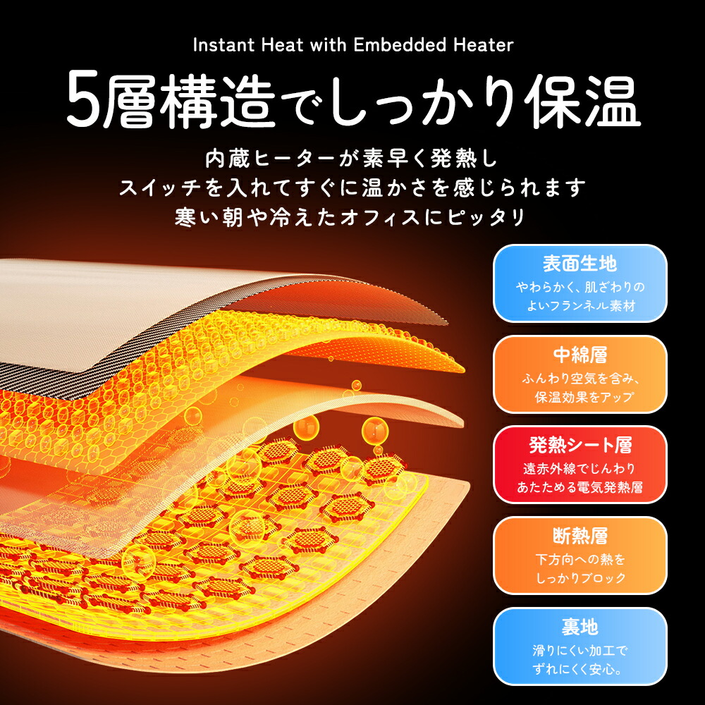 内蔵ヒーターを中心に、保温と快適さを考えた5層構造。