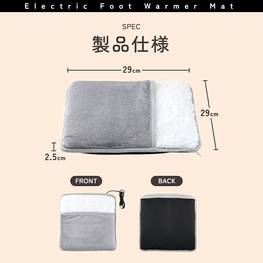 本製品は、足をすっぽり包み込むクッションタイプの電気足温マット。
