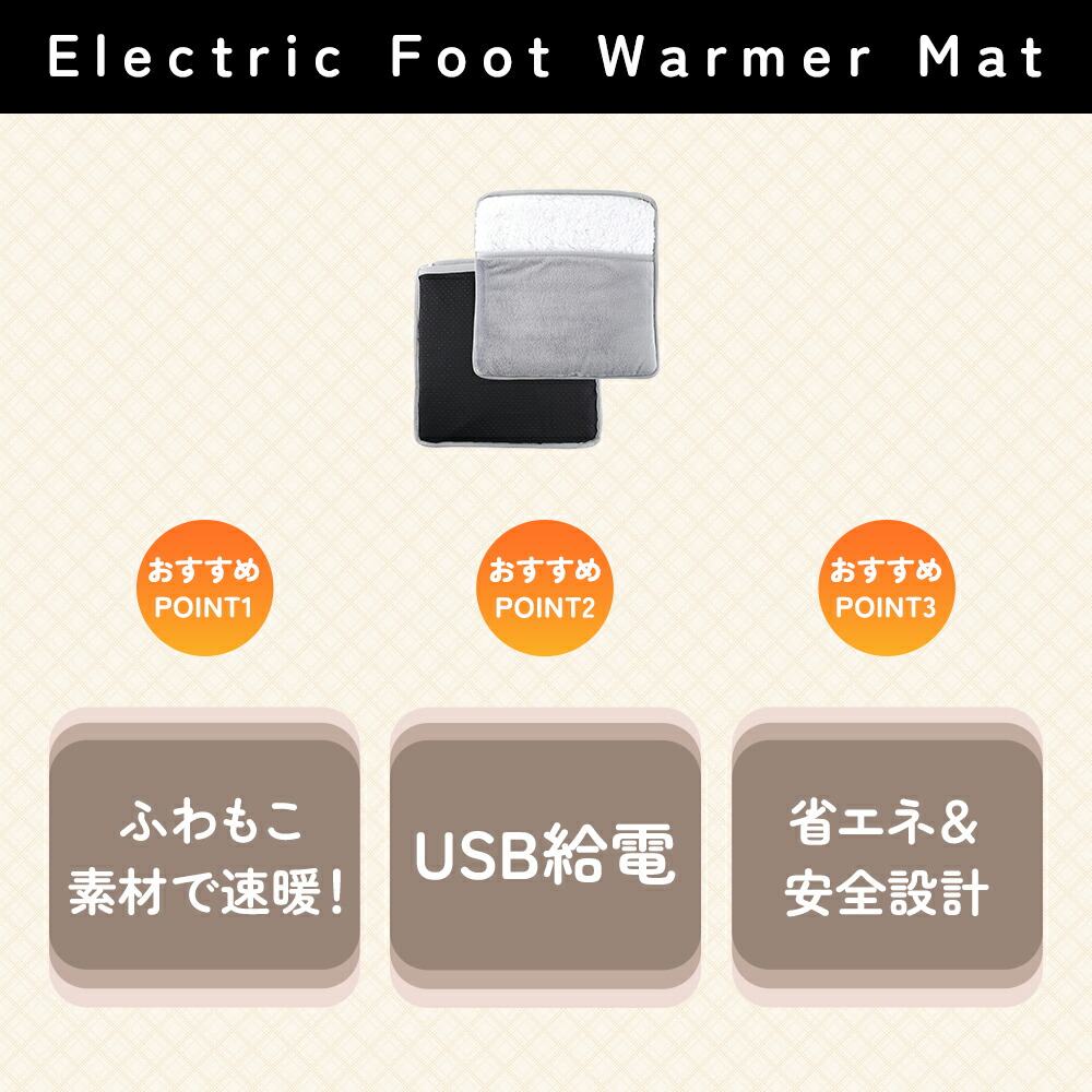 三段階コントローラー付きUSB電気足温マットで、寒い季節もあたたかく。