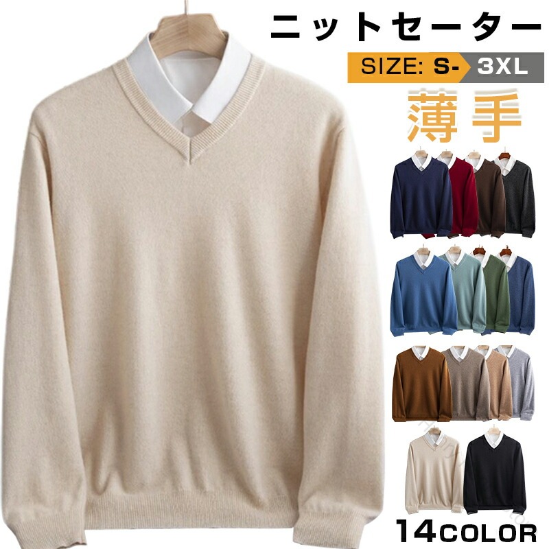 Vネック ニットセーター メンズ 無地 トップス ニット セーター 豊富な品揃え S M L XL 2XL ベージュ ライトグレー キャメル ブラウン カラメル ダークグレー 黒 ネイビー コーヒー ワイン ライトブルー ダークブルー グリーン 青緑