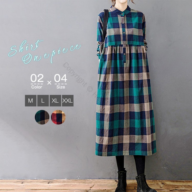 シャツワンピース ロング ワンピース レディースファッション 人気 A B C M L XL XXL