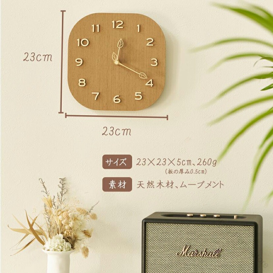 壁掛け時計 おしゃれ 北欧 23cm 葉針・ホワイト 葉針・ブラウン 枝針・ホワイト 枝針・ブラウン