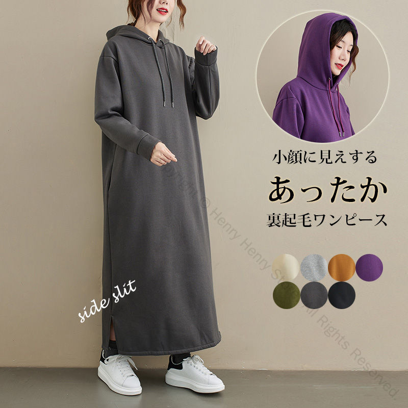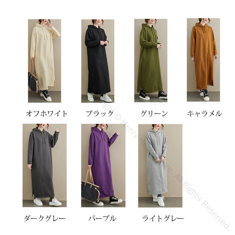 パーカー ワンピース 秋冬 裏起毛 マ レディースファッション 続々入荷中 オフホワイト ブラック グリーン キャラメル ダークグレー パープル ライトグレー