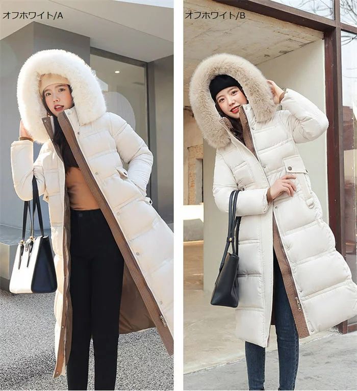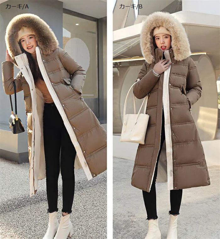 ダウンコート中綿コート ロングコート レディースファッション 豊富 カーキ A カーキ B オフホワイト A オフホワイト B ブラック A ブラック B グリーン A グリーン B M L XL 2XL