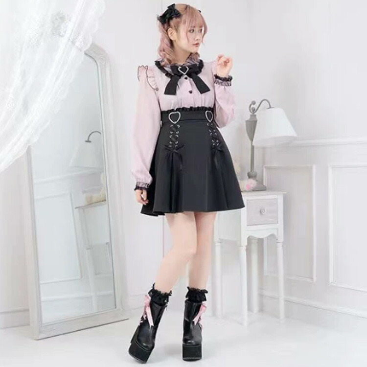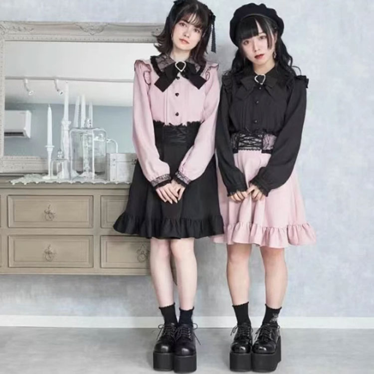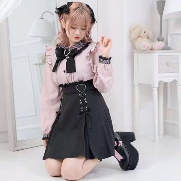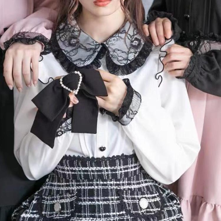長袖 地雷系 フリル 可愛い レディー トップス シャツ ブラウス 新登場! ブラック(リボン付き) ホワイト(リボン付き) ピンク(リボン付き) S M L XL