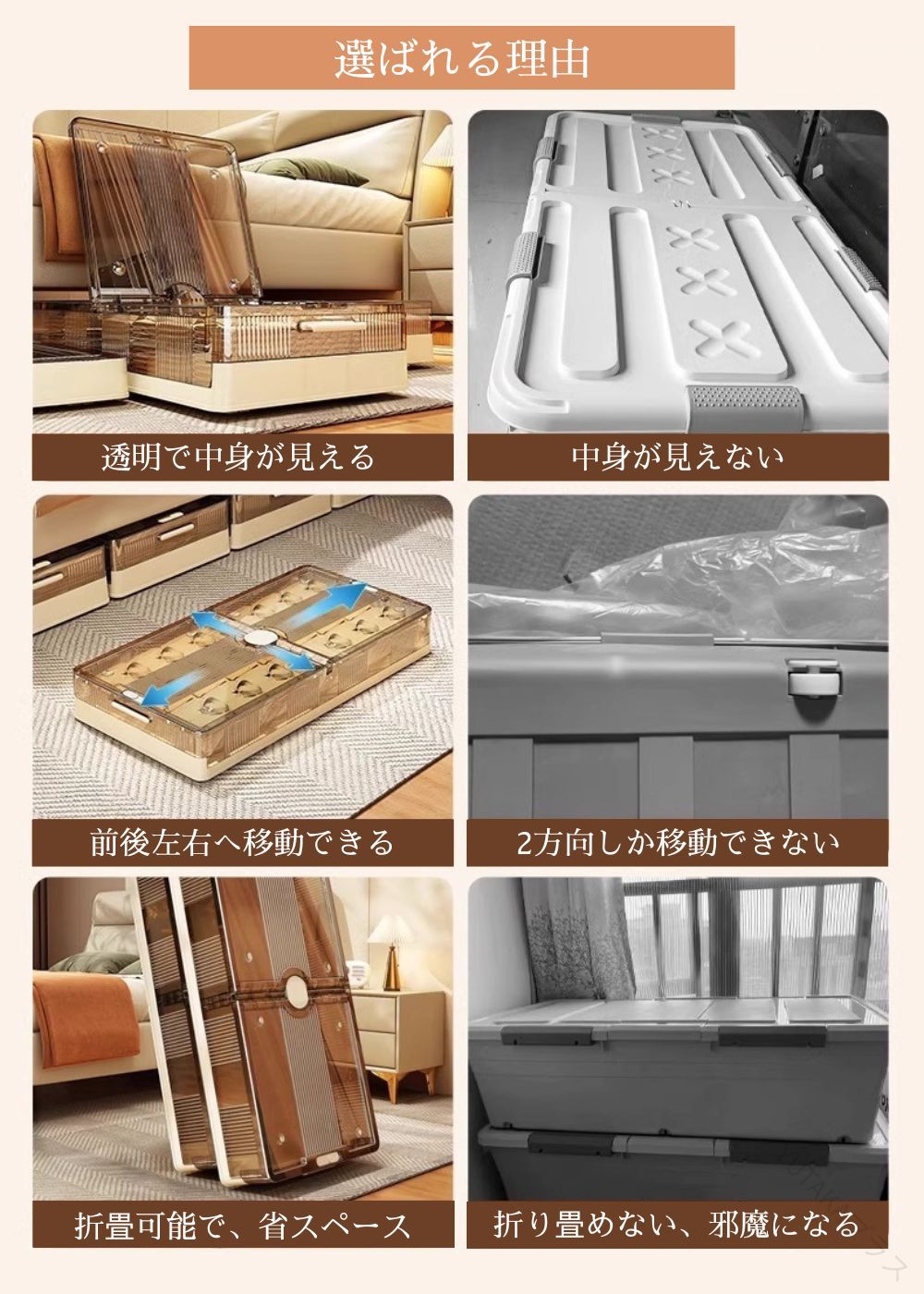 ベッド下収納ボックス 折りたたみ 薄型 Sサイズ(高さ15CM) Mサイズ(高さ20CM) Lサイズ(高さ25CM) 中(長82CM*幅40CM) 大(長100CM*幅50CM)