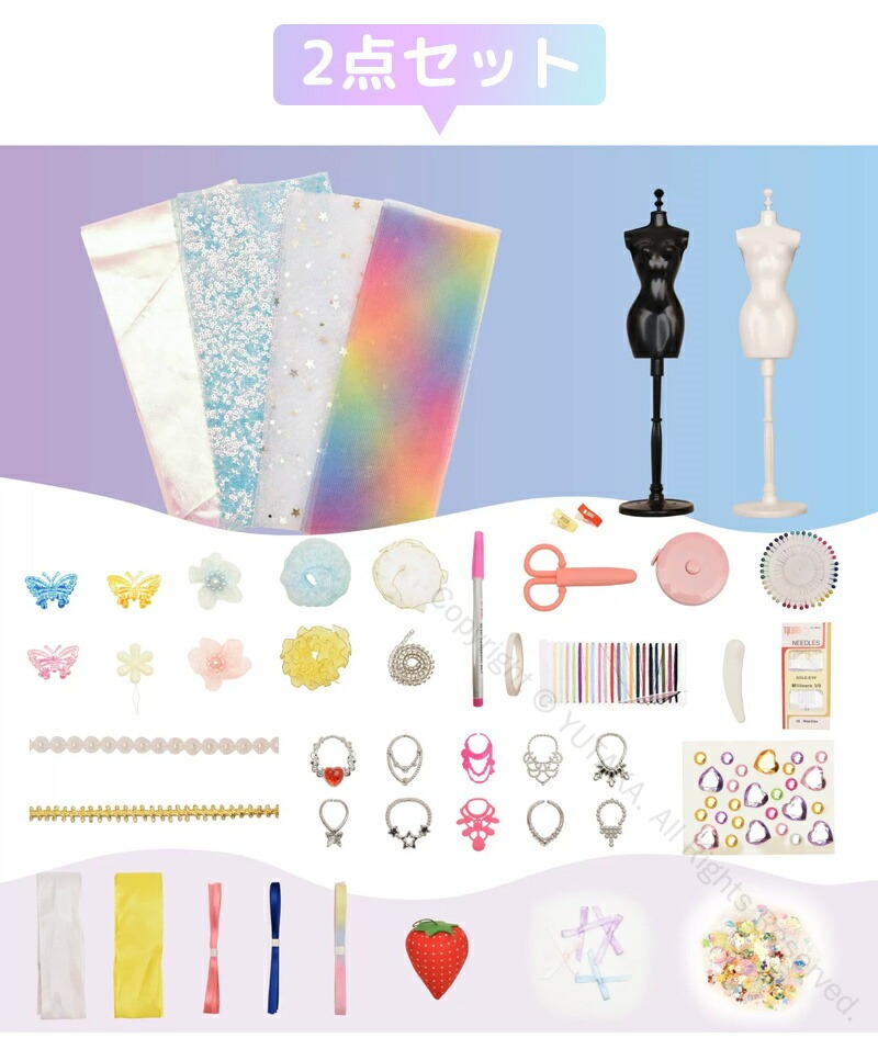 ◆縫わずにおしゃれなドレスが作れる!ファッションデザイナー気分になれる手芸キット登場!針もミシンも不要!布やアクセサリーを組み合わせて、自分だけのオリジナルドレスが作れる手芸キットです。トルソー付きで、完成した作品はそのままディスプレイ可能。裁縫が初めてのお子さまでも、簡単・安全に楽しく遊べます。女の子の「作ってみたい!」「かわいくしたい!」という気持ちを叶えるキットで、創造力・表現力を育むことができます。プレゼントや誕生日ギフトにもぴったりの豪華なセットです。商品仕様内容物:トルソー、ドレス生地、リボン、アクセサリー、装飾小物等推奨年齢:小学生(高学年)~中学生、6歳以上特徴:縫わないで作れる、針不要、安全性重視対象性別:女の子向けよくある質問(FAQ)Q:針を使いますか 安全ですか A:いいえ、本キットは針を使用せず、貼る・結ぶなどの方法で安全に作ることができます。Q:何着くらい作れますか A:基本セットで2~3着分のドレスを作ることが可能です(装飾によって変動)。Q:どのくらいの年齢から遊べますか A:6歳以上の女の子におすすめですが、保護者と一緒に取り組めば年中~年長のお子様も楽しめます。Q:完成品は飾れますか A:はい、トルソー付きなので、作ったドレスは飾って楽しむことができます。使用シーン誕生日・クリスマスのギフトに休日の親子クラフト時間に夏休み・冬休みの自由研究や創作活動におしゃれに興味を持ち始めたお子様の初めての洋裁体験にお友達とのパーティー遊びやおもちゃ交換会にも大人気使用対象者小学生・高学年の女の子創作活動が好きなお子様かわいい服やファッションに興味がある子親子で一緒にものづくりを楽しみたい方プレゼント・ギフトを探している保護者の方