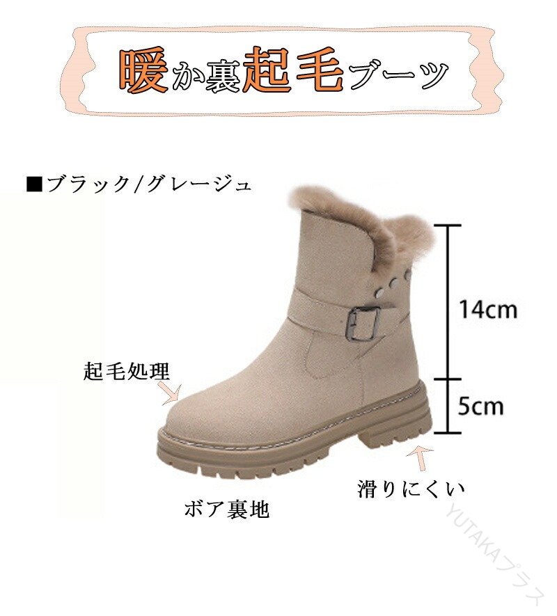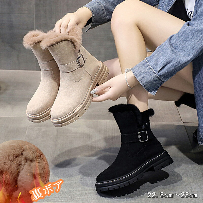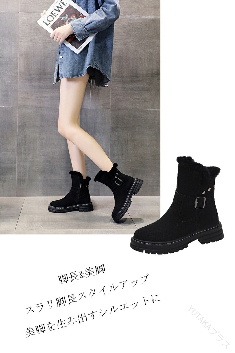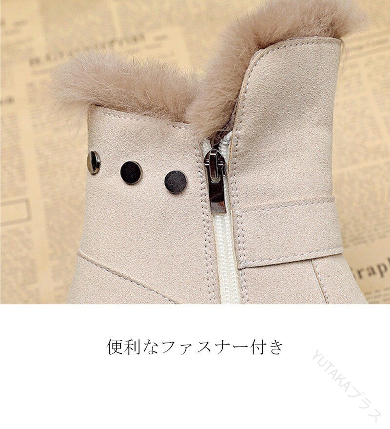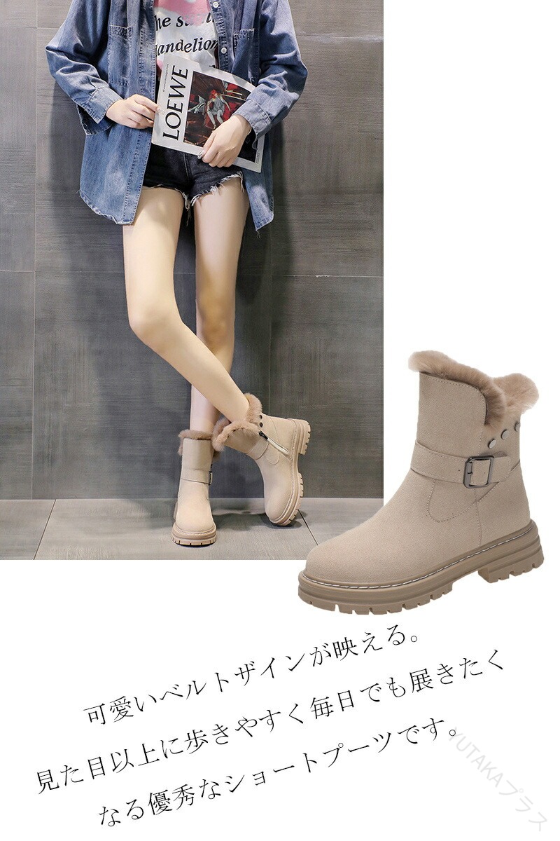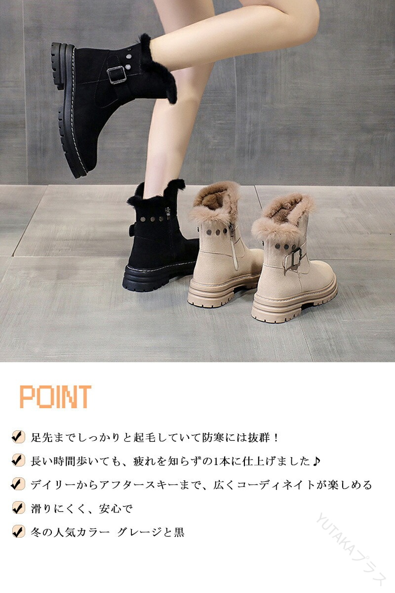 裏起毛ムートンブーツ レディース ボア スノーブーツ ショートブーツ シューズ ローヒール ぺたんこ ブーツ 女性 歩きやすい 厚底 ショート ミドルブーツ ファスナー 革靴 デザイン 滑 ファー付き