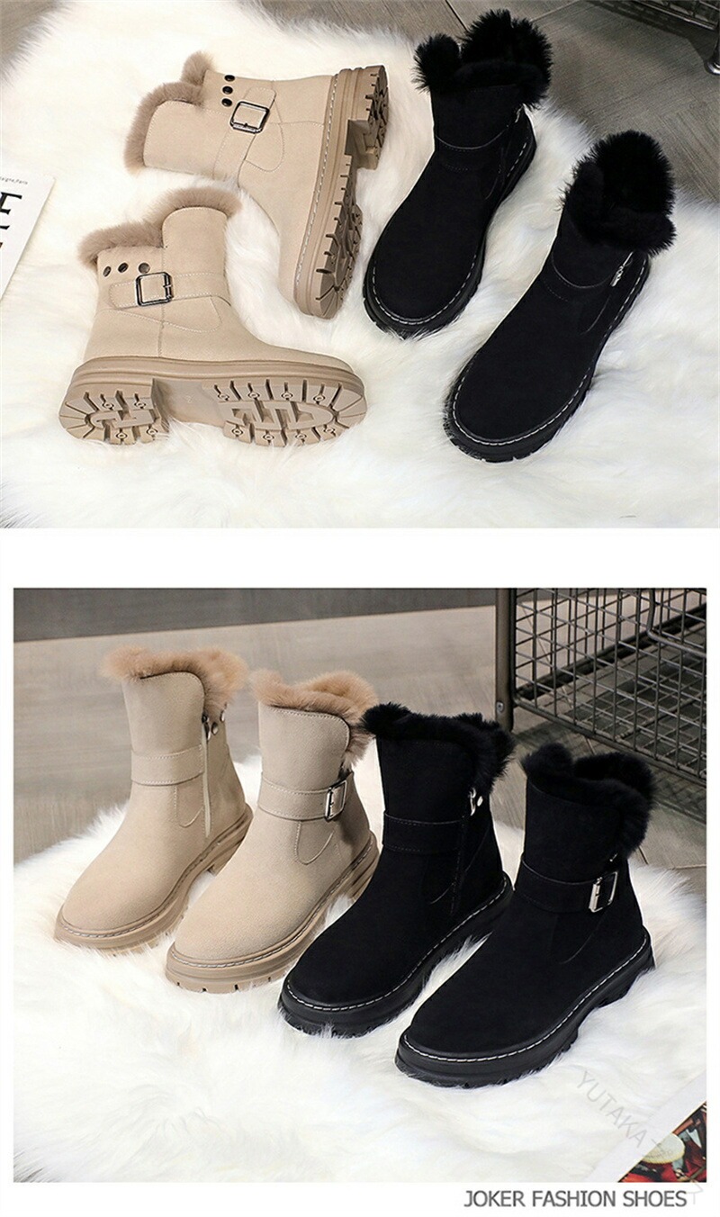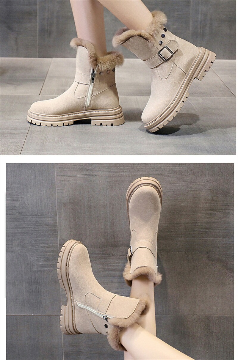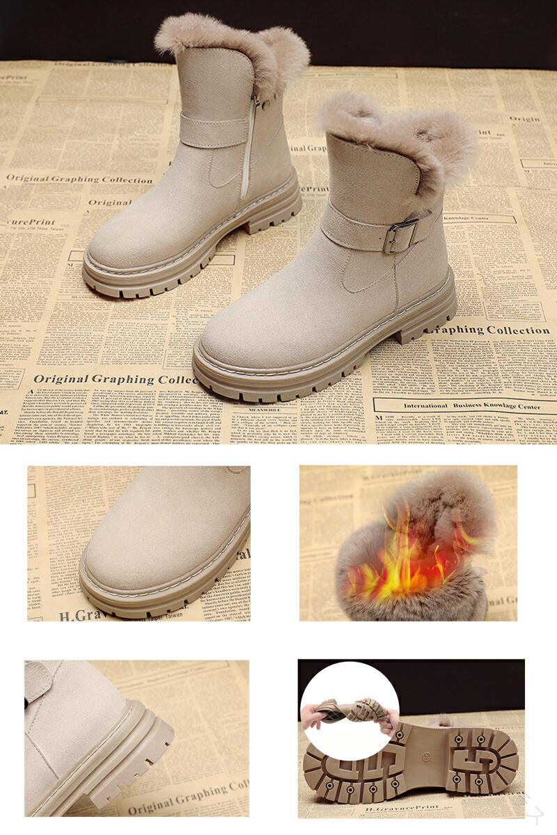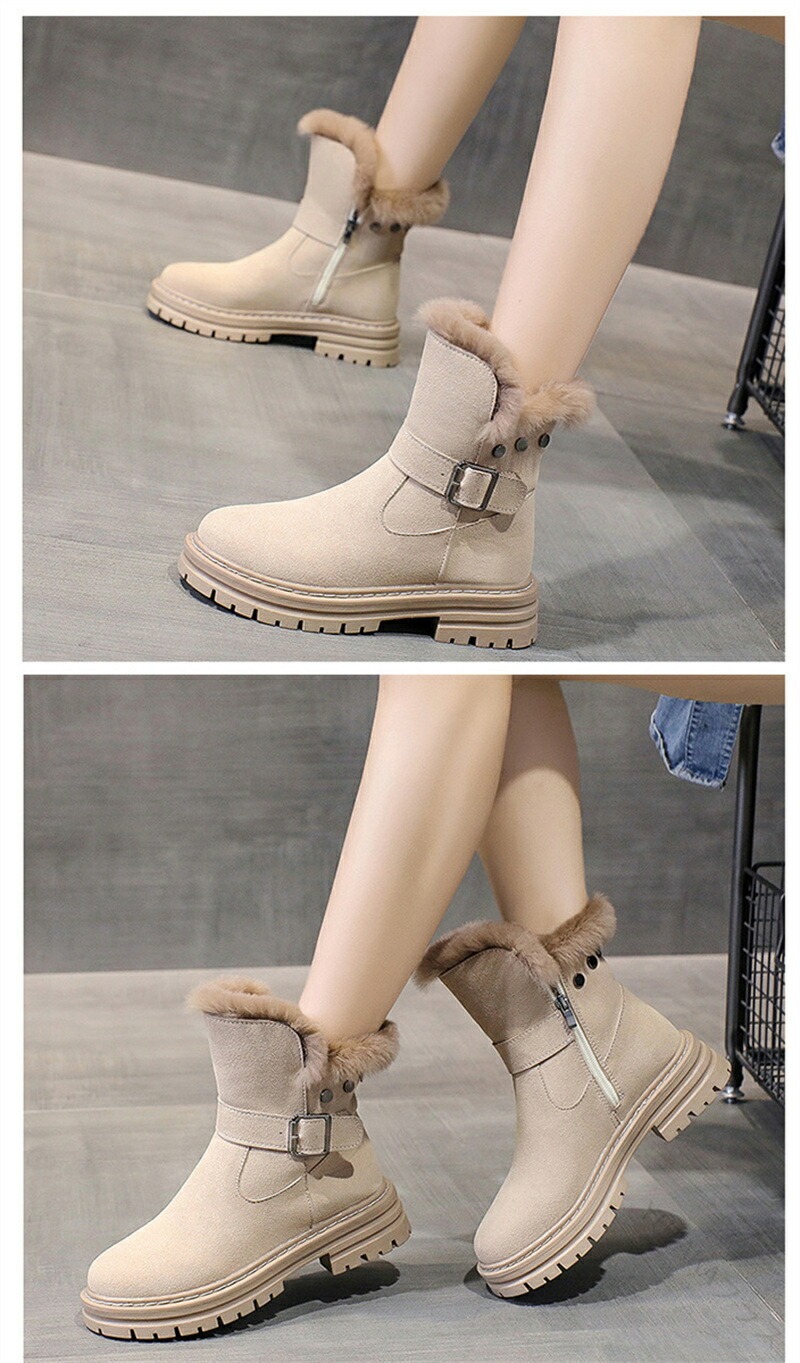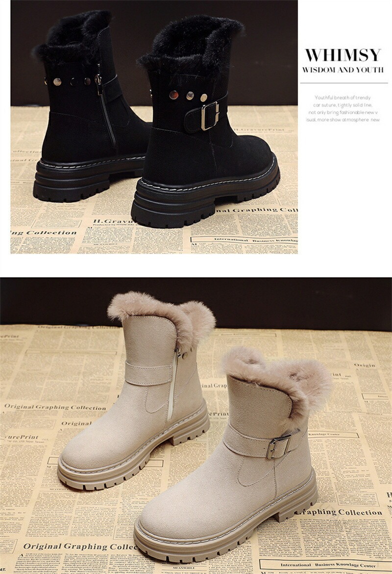裏起毛ムートンブーツ レディース ボア スノーブーツ ショートブーツ シューズ ローヒール ぺたんこ ブーツ 女性 歩きやすい 厚底 ショート ミドルブーツ ファスナー 革靴 デザイン 滑 ファー付き