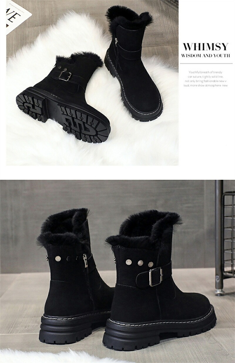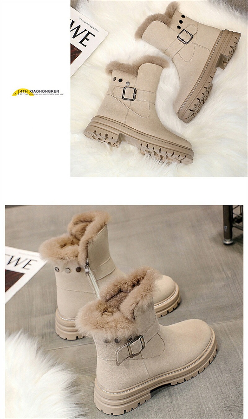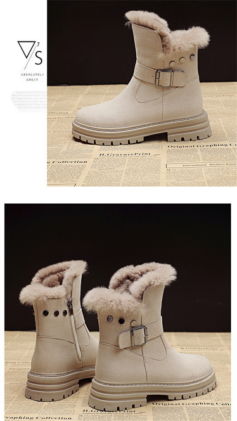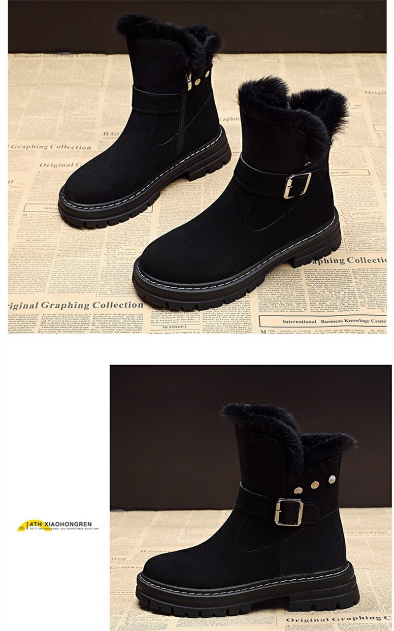 裏起毛ムートンブーツ レディース ボア スノーブーツ ショートブーツ シューズ ローヒール ぺたんこ ブーツ 女性 歩きやすい 厚底 ショート ミドルブーツ ファスナー 革靴 デザイン 滑 ファー付き