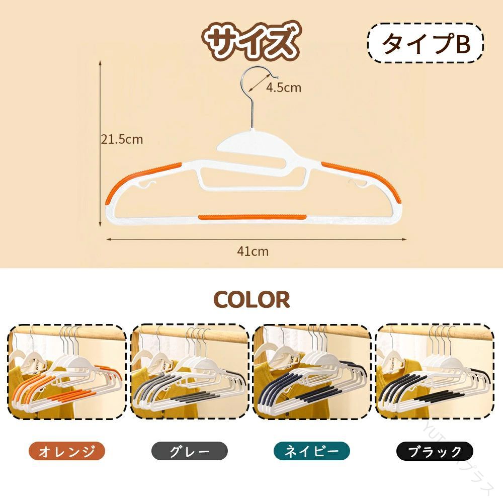 ハンガー 短い 多機能ハンガー 超薄型 グレー オレンジ ブルー ホワイト グレー-タイプB オレンジ-タイプB ネイビー-タイプB ブラック-タイプB 10本セット 20本セット 50本セット