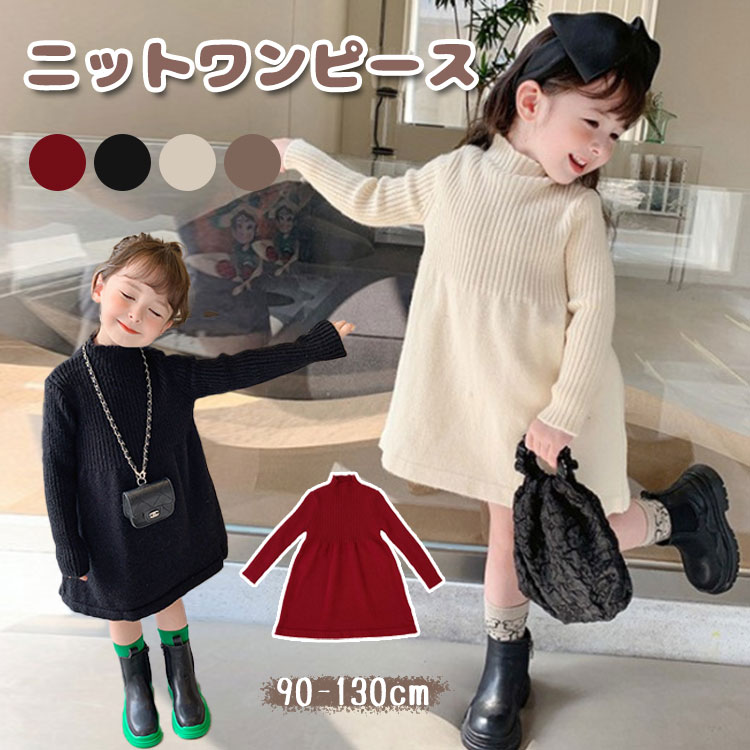 ワンピース ニットワンピース キッズ キッズ ワンピース 豊富 ブラック レッド ベージュ ブラウン 90cm 100cm 110cm 120cm 130cm