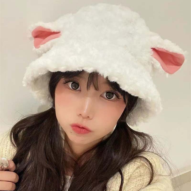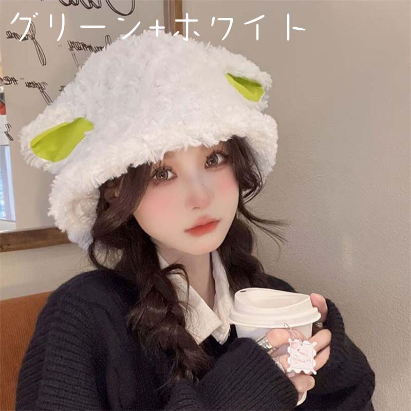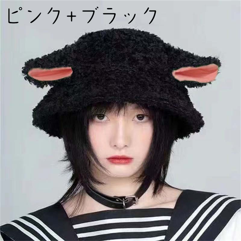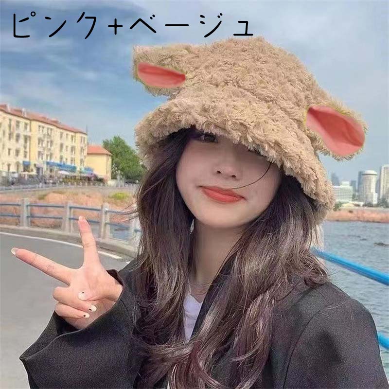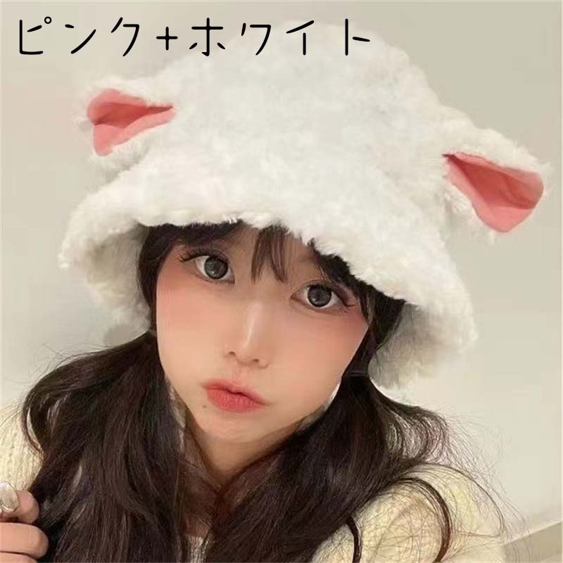 バケットハット レディース 秋冬用 防寒 ぼうし こひつじ 子羊 かわいい シンプル ゆったり 韓国 インス 高級感 学園 フリーサイズ プレゼント 美少女