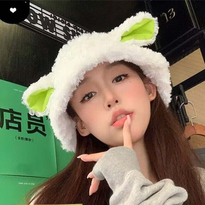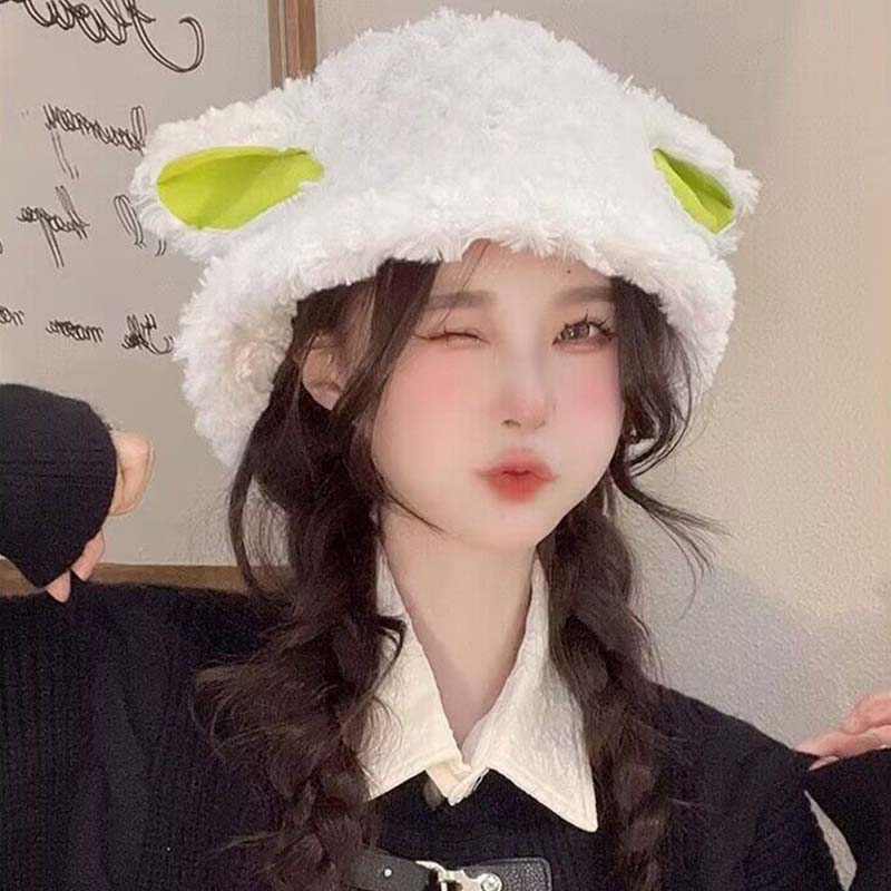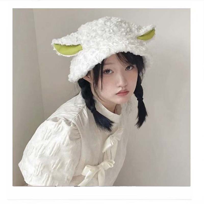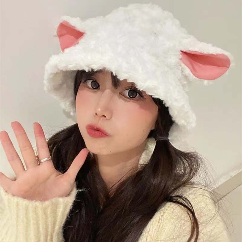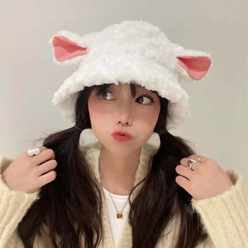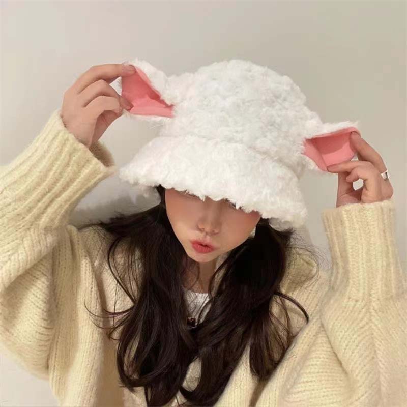バケットハット レディース 秋冬用 防寒 ぼうし こひつじ 子羊 かわいい シンプル ゆったり 韓国 インス 高級感 学園 フリーサイズ プレゼント 美少女