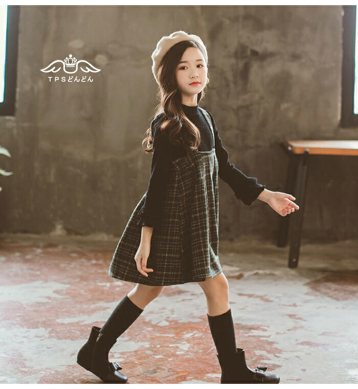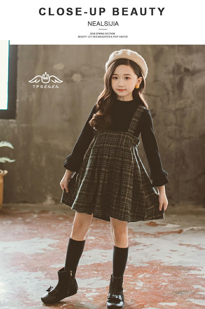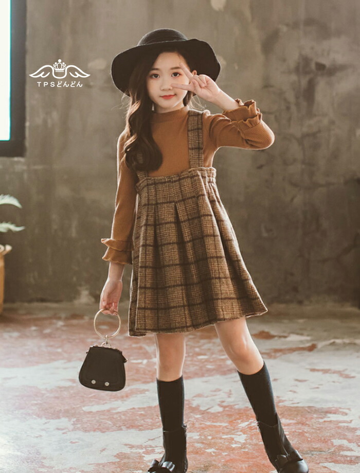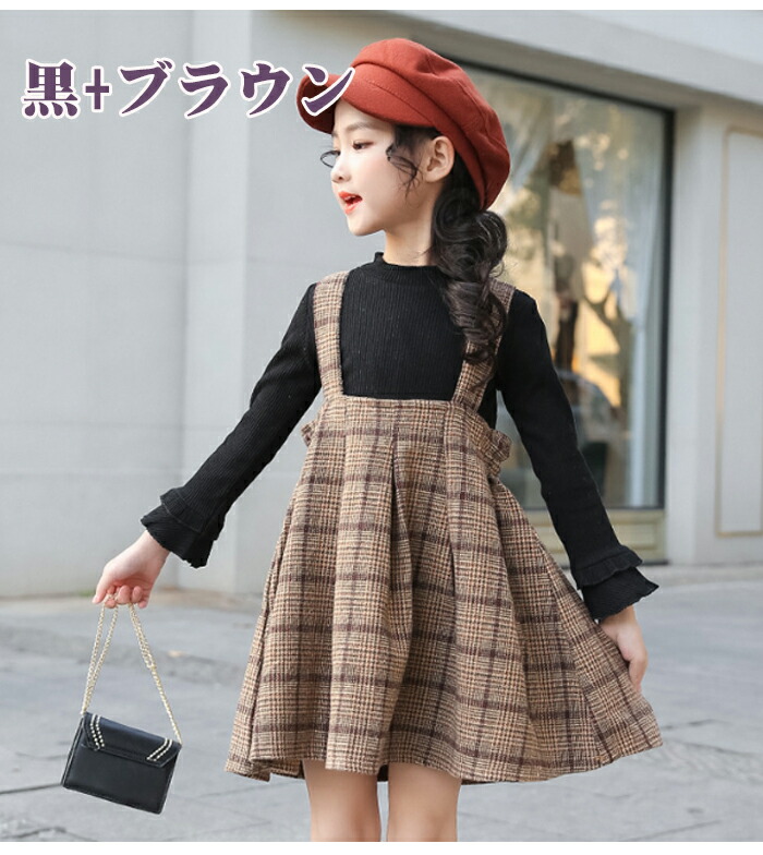 ワンピース 女の子 秋冬 韓国 子供服 キッズ ベビー マタニティ 新作 ブラウン+ブラウン ブラック+緑 黒+ブラウン 緑+ブラウン 110cm 120cm 130cm 140cm 150cm 160cm