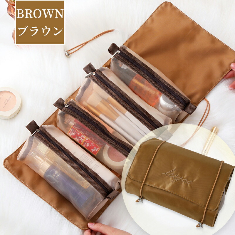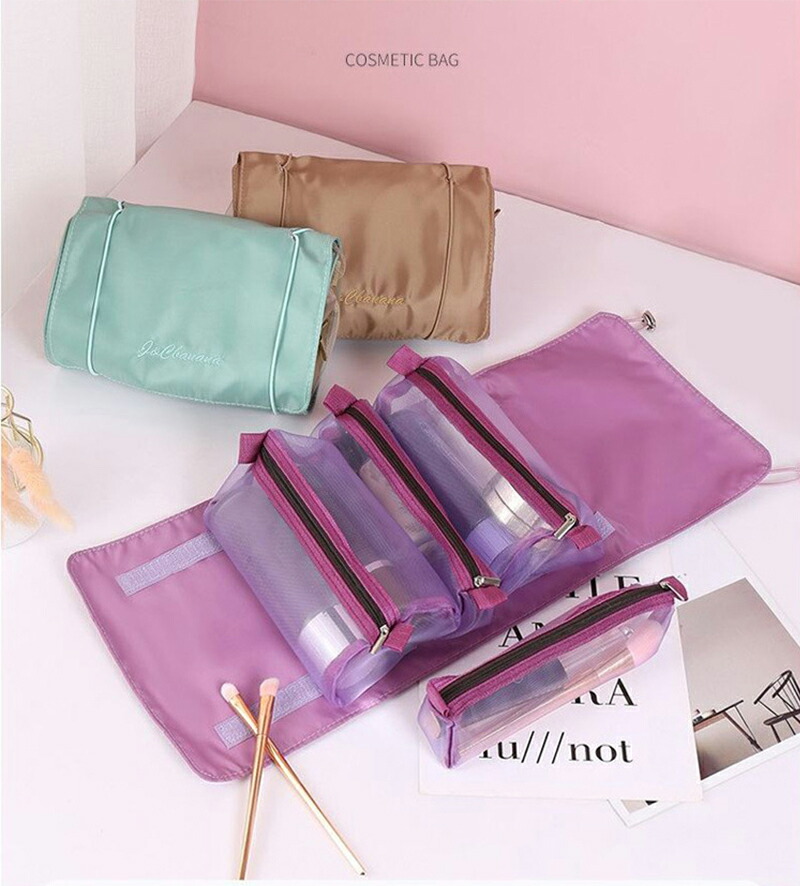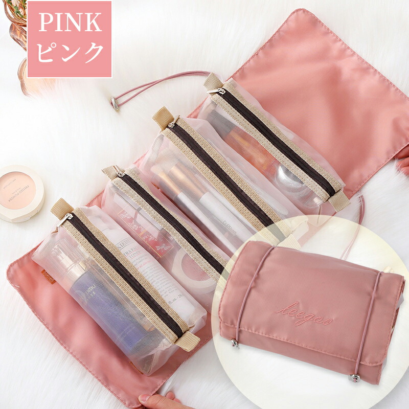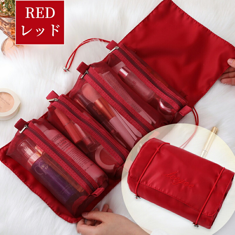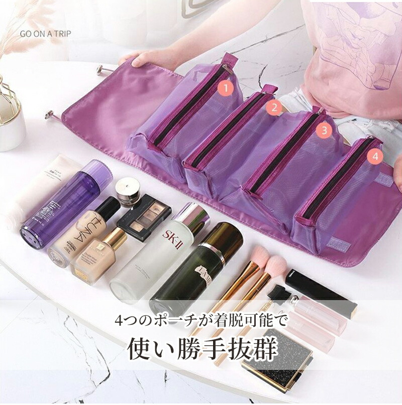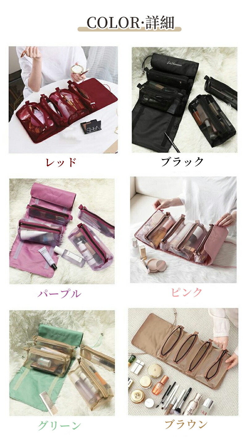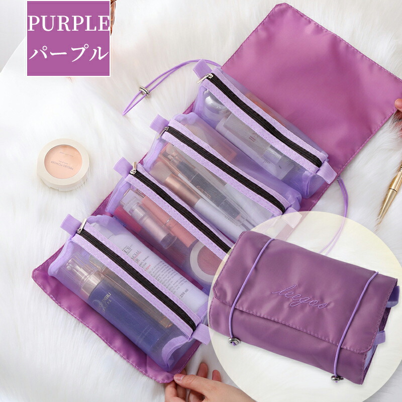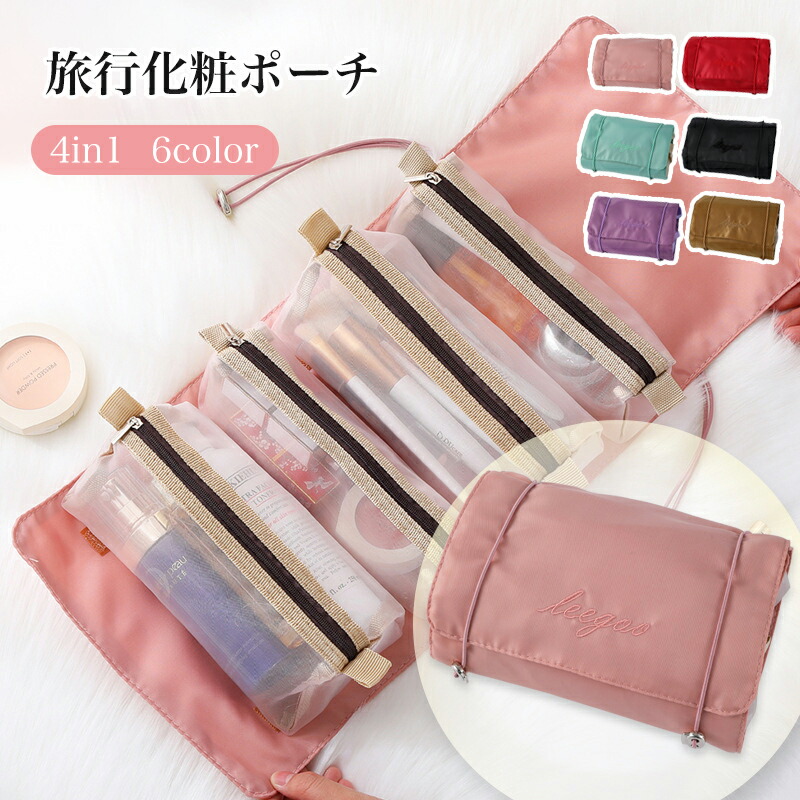旅行化粧ポーチ 4in1 化粧ポーチ バッグ レディースバッグ 化粧ポーチ 新登場! レッド グリーン ブラック パープル ブラウン ピンク