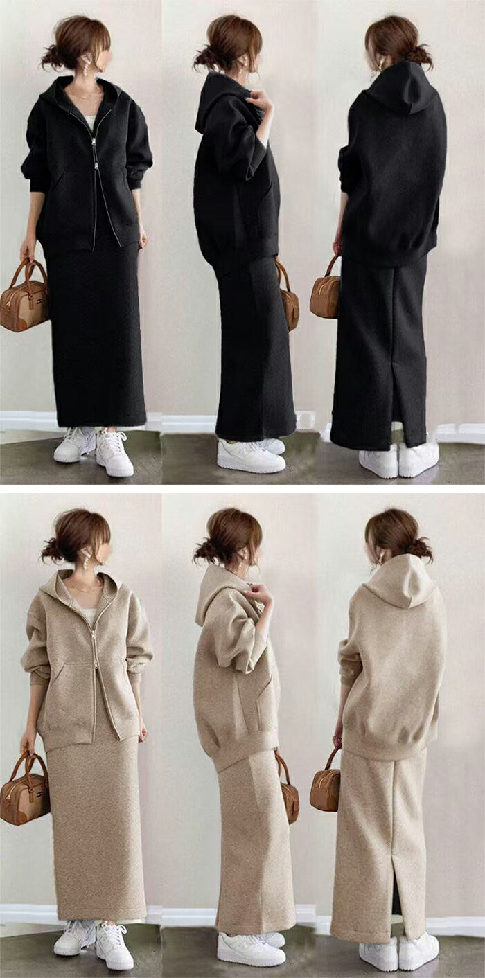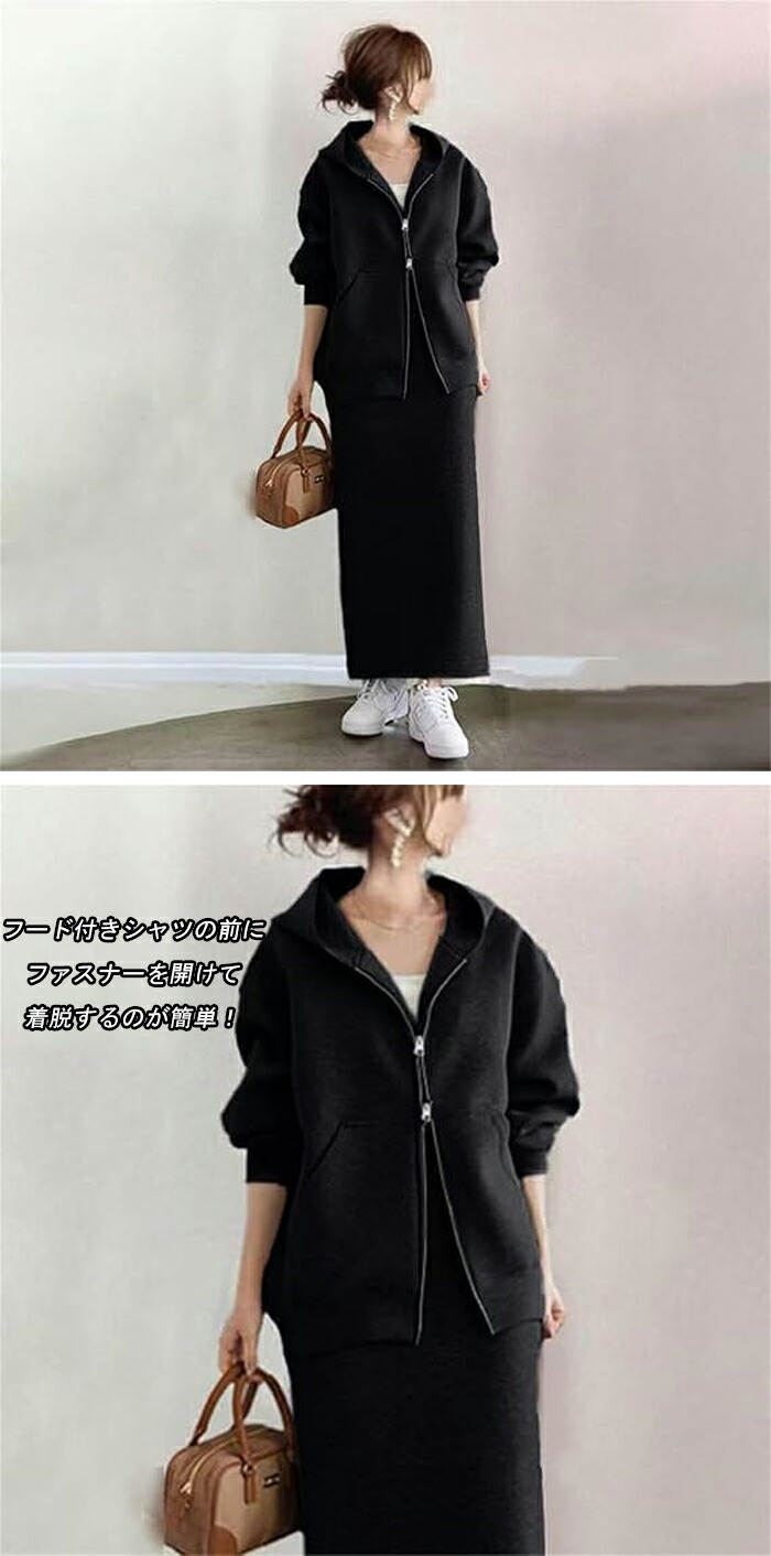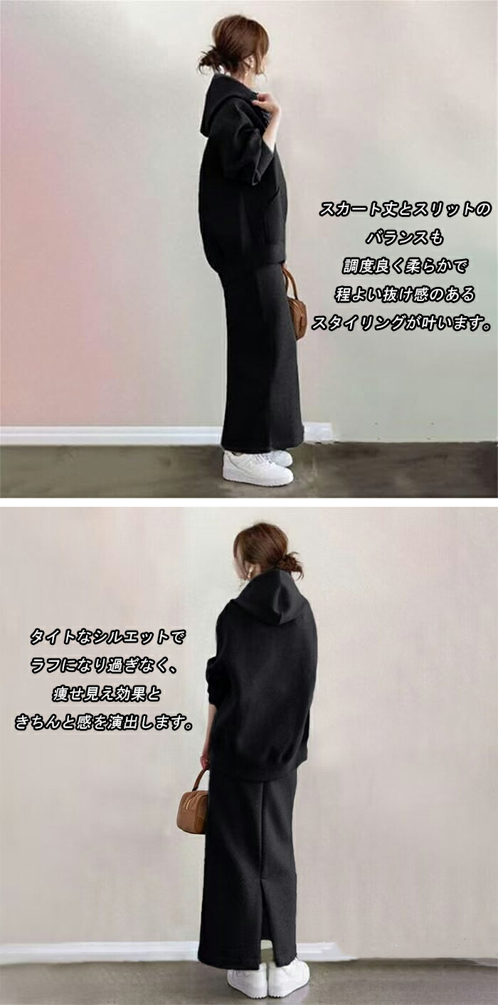 フードパーカー セットアップ レディー スーツ セットアップ スカートスーツ 豊富な品揃え ブラック グレー ベージュ S M L