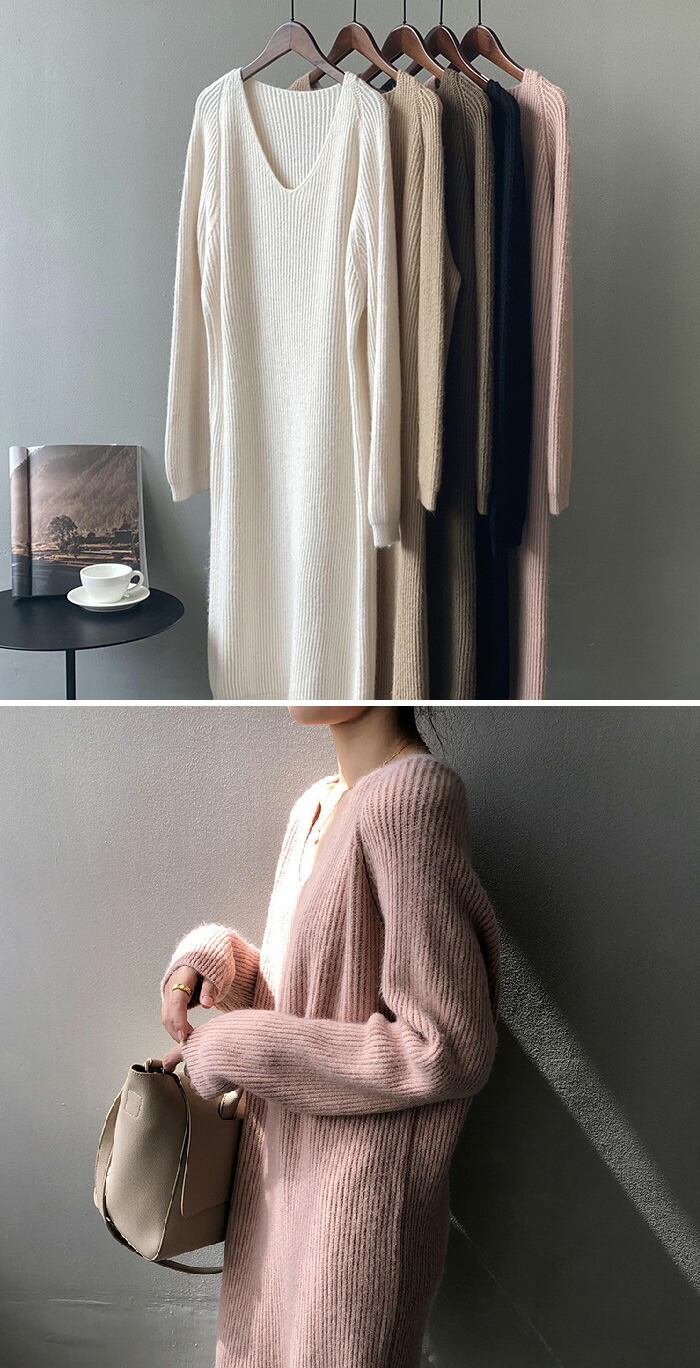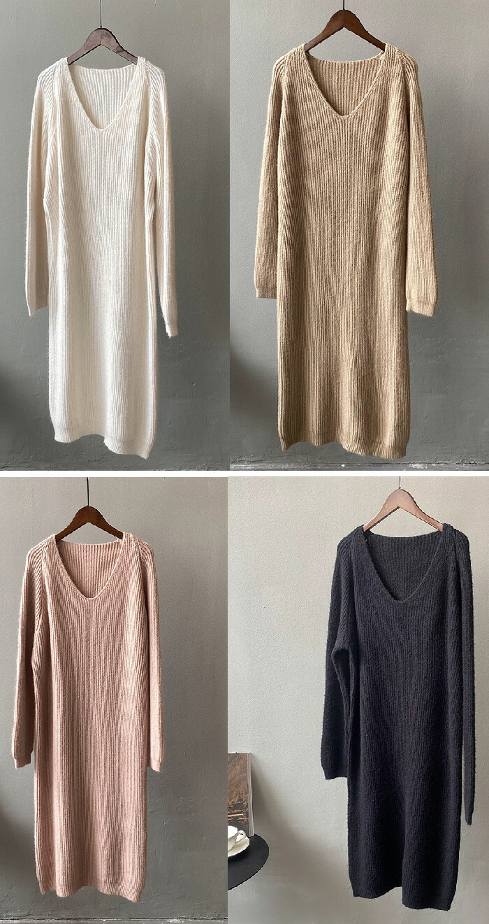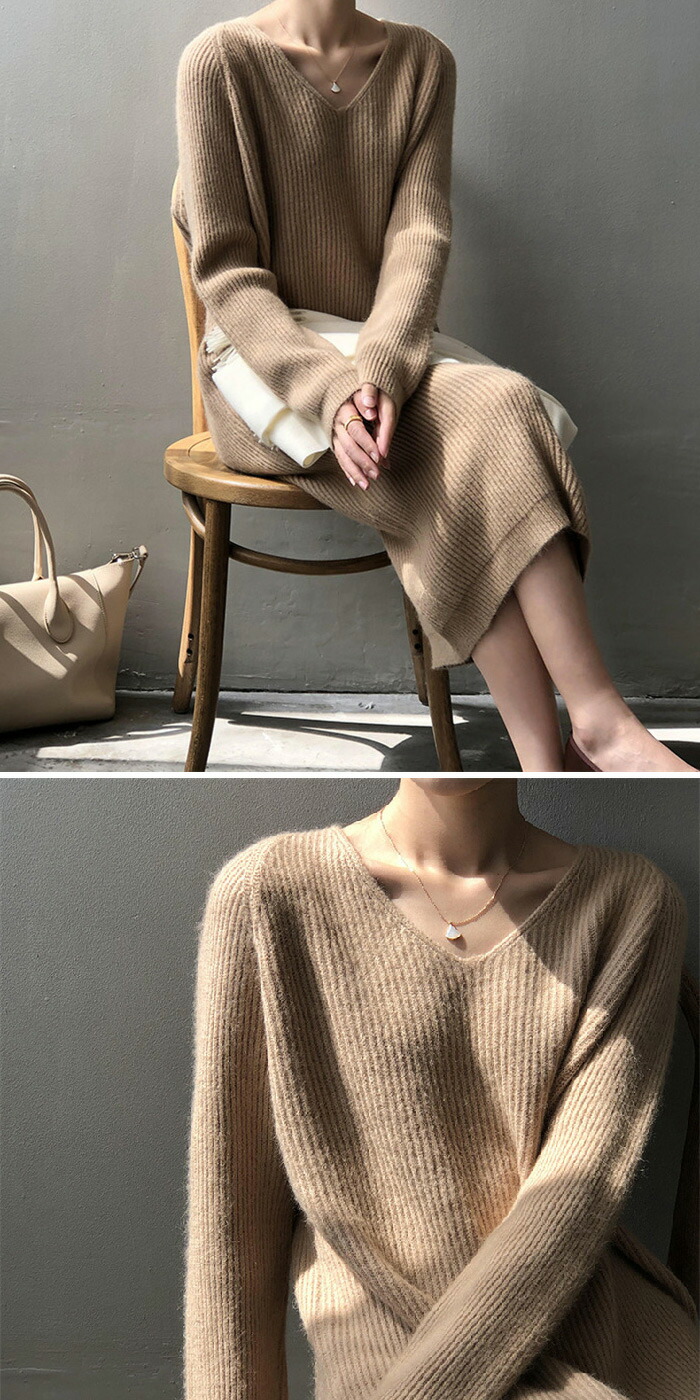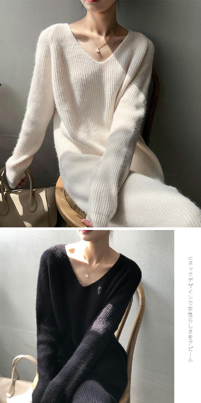 ニットワンピース ロング vネック 秋 ワンピース 超目玉商品 カーキ ピンク ブラック ホワイト
