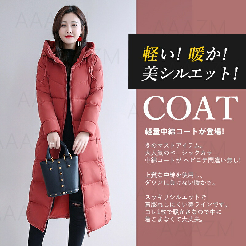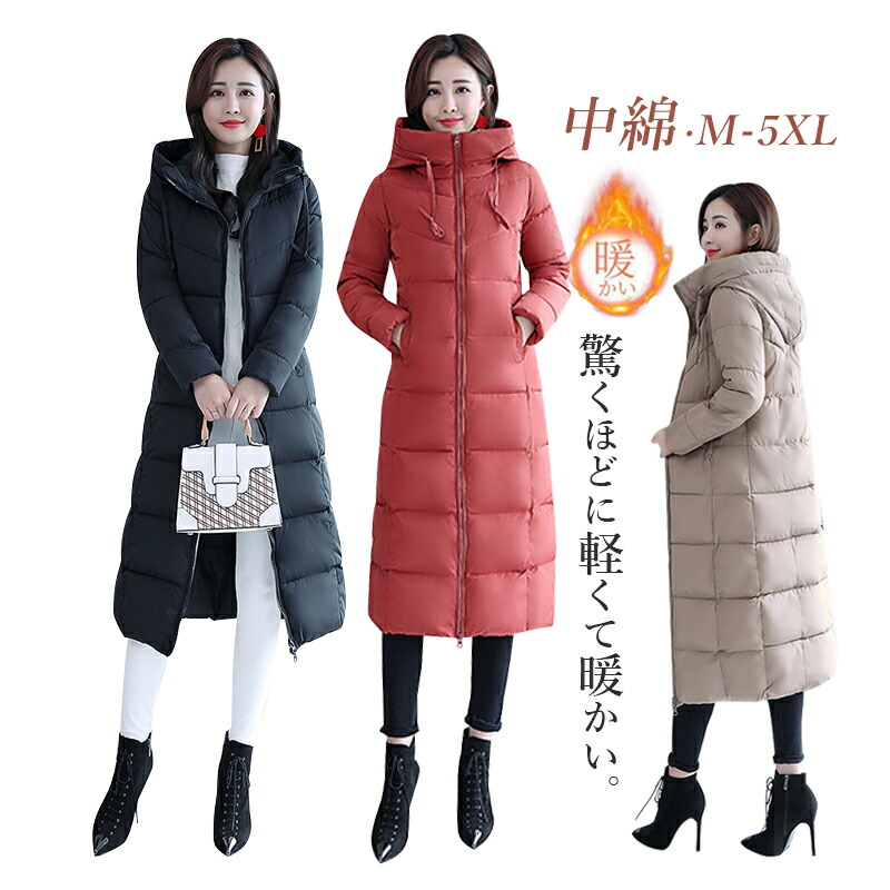 ロングコート レディース 中綿 おしゃれ フード付き ロング丈 ダウンコート ファッション 膝丈 暖かい アウター 赤 レッド ブラック カーキ コーヒ オーバーコート 女性着 20代 30代 女子