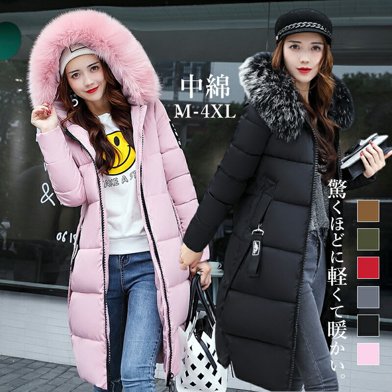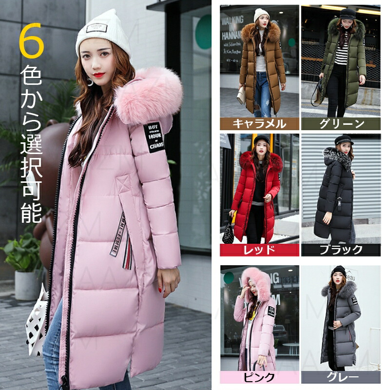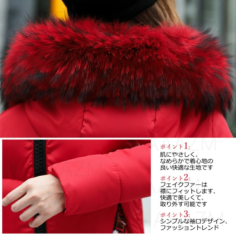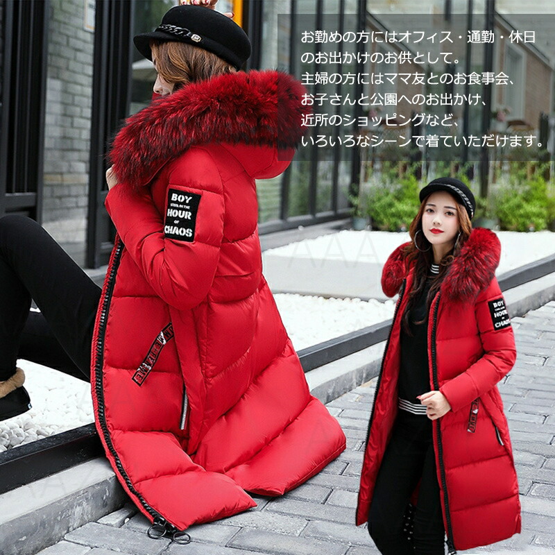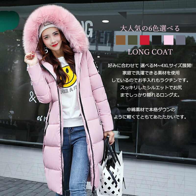 ロングコート レディース 中綿 おしゃれ 毛皮 フード付き ダウンコート 膝丈 軽量 撥水 厚手 暖かい アウター 赤 グレー ブラック グリーン ピンク オーバーコート 20代 30代 40代 女性